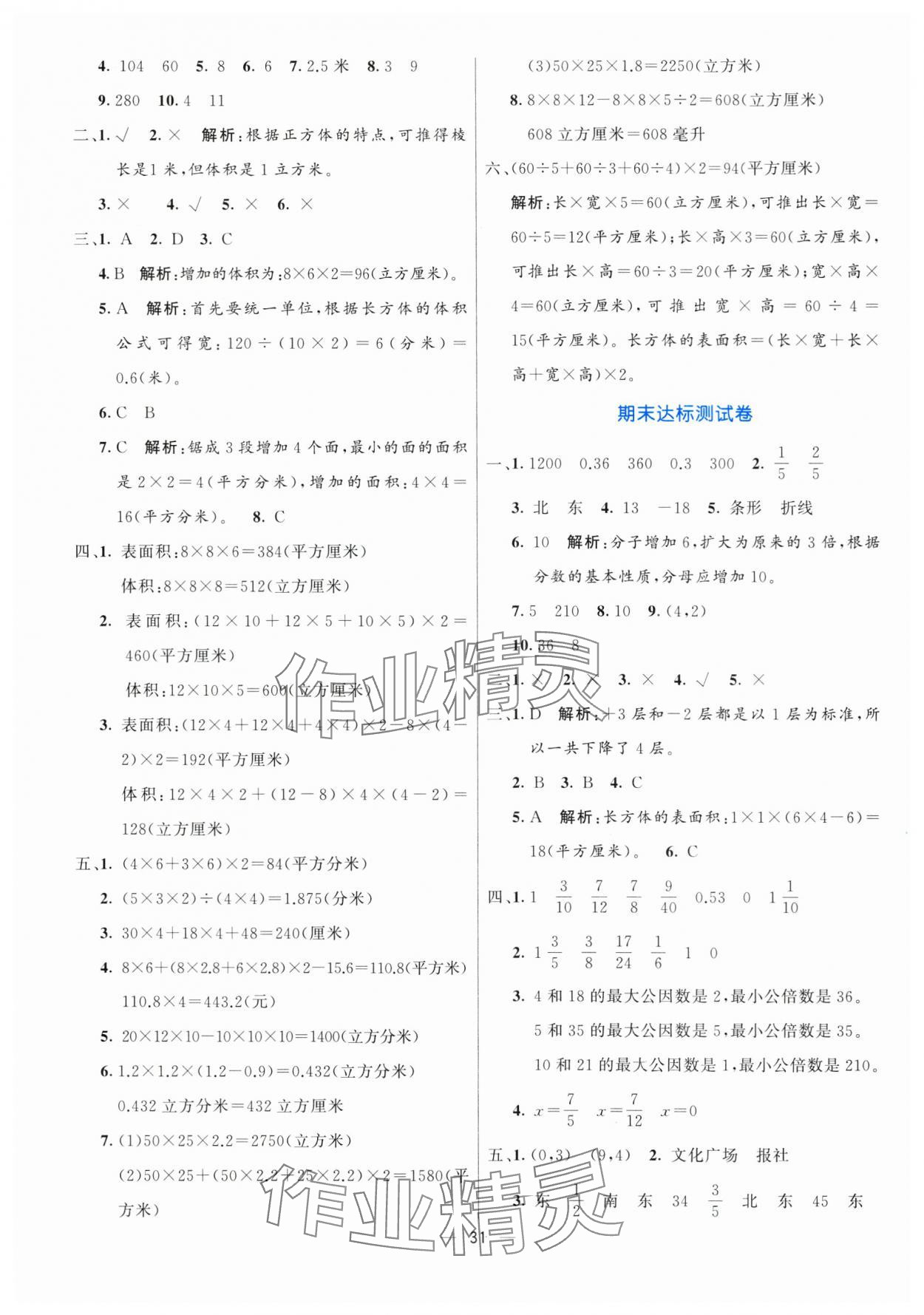 注:目前有些书本章节名称可能整理的还不是很完善,但都是按照顺序排列的,请同学们按照顺序仔细查找。练习册 2025年亮点激活提优天天练五年级数学下册青岛版 答案主要是用来给同学们做完题方便对答案用的,请勿直接抄袭。