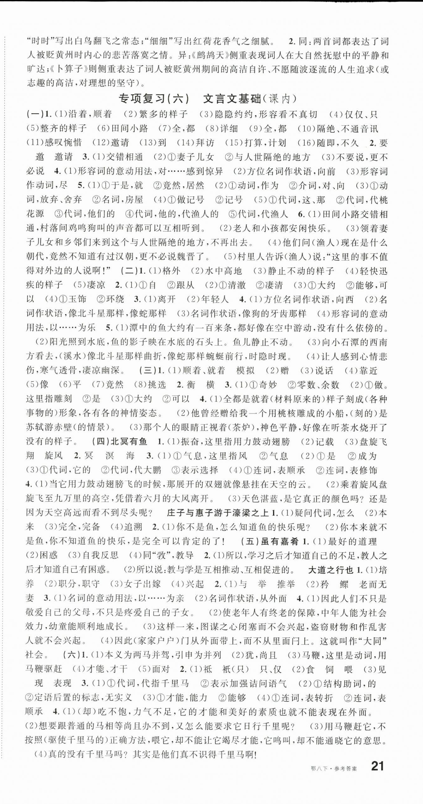 注:目前有些书本章节名称可能整理的还不是很完善,但都是按照顺序排列的,请同学们按照顺序仔细查找。练习册 2025年名校课堂八年级语文下册人教版湖北专版 答案主要是用来给同学们做完题方便对答案用的,请勿直接抄袭。