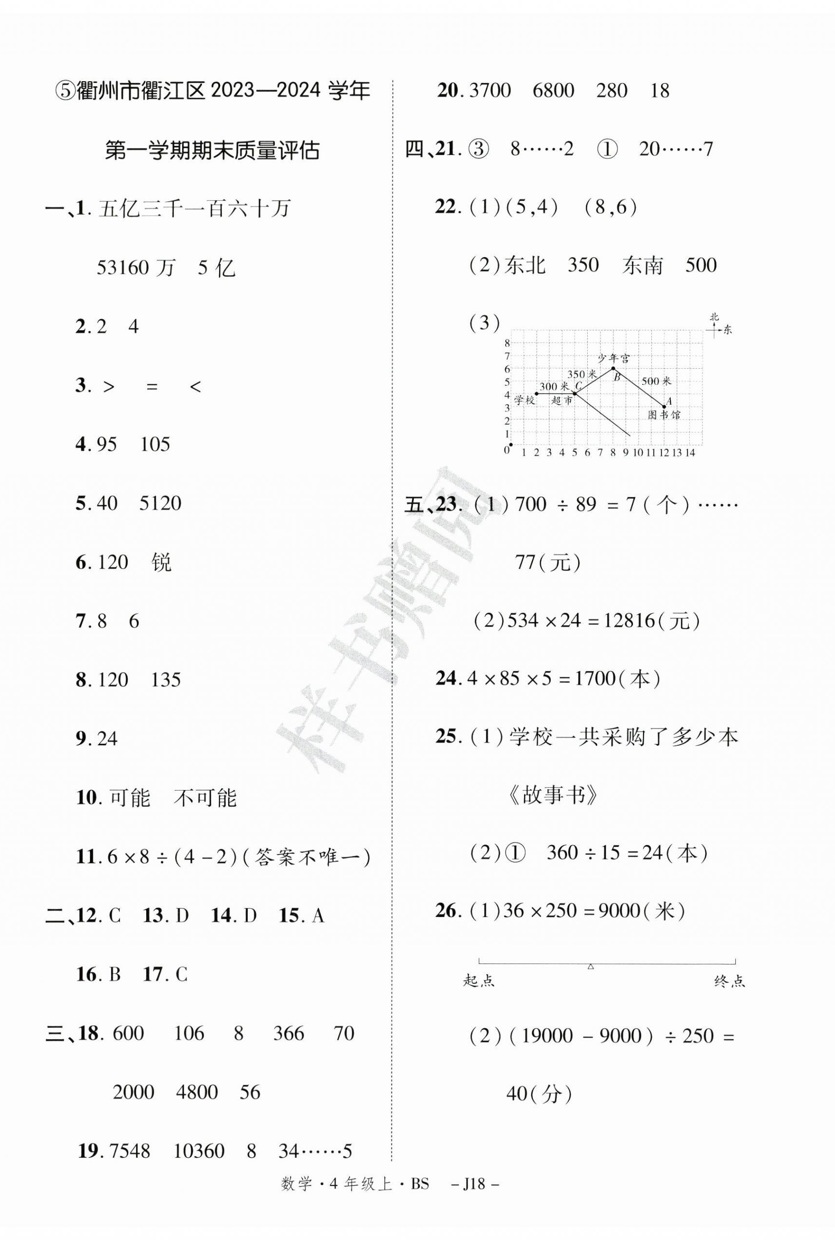 注:目前有些书本章节名称可能整理的还不是很完善,但都是按照顺序排列的,请同学们按照顺序仔细查找。练习册 2024年期末真题新卷四年级数学上册北师大版浙江专版 答案主要是用来给同学们做完题方便对答案用的,请勿直接抄袭。