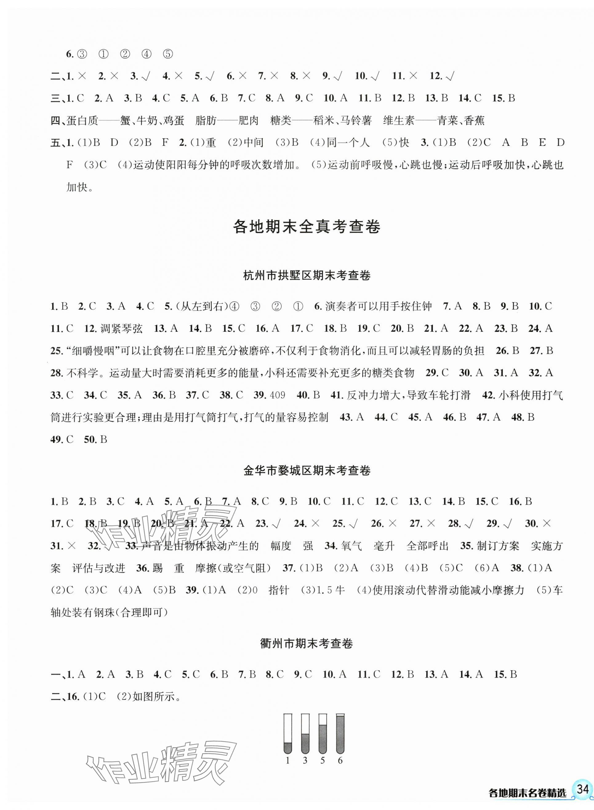 注:目前有些书本章节名称可能整理的还不是很完善,但都是按照顺序排列的,请同学们按照顺序仔细查找。练习册 2024年各地期末名卷精选四年级科学上册教科版 答案主要是用来给同学们做完题方便对答案用的,请勿直接抄袭。