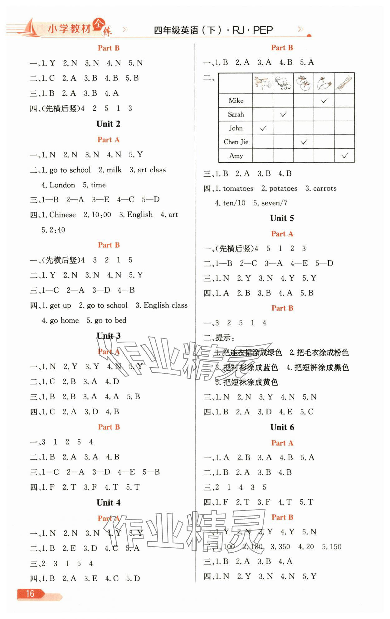 注:目前有些书本章节名称可能整理的还不是很完善,但都是按照顺序排列的,请同学们按照顺序仔细查找。练习册 2025年教材全练四年级英语下册人教版 答案主要是用来给同学们做完题方便对答案用的,请勿直接抄袭。