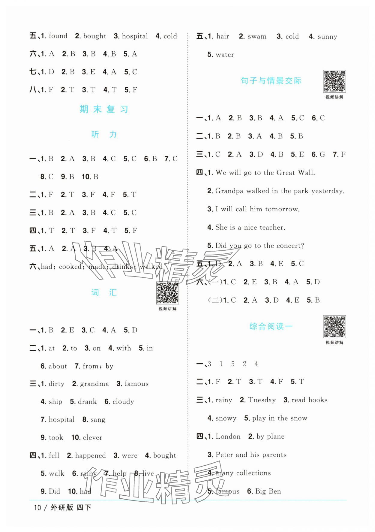 注:目前有些书本章节名称可能整理的还不是很完善,但都是按照顺序排列的,请同学们按照顺序仔细查找。练习册 2025年阳光同学课时优化作业四年级英语下册外研版 答案主要是用来给同学们做完题方便对答案用的,请勿直接抄袭。