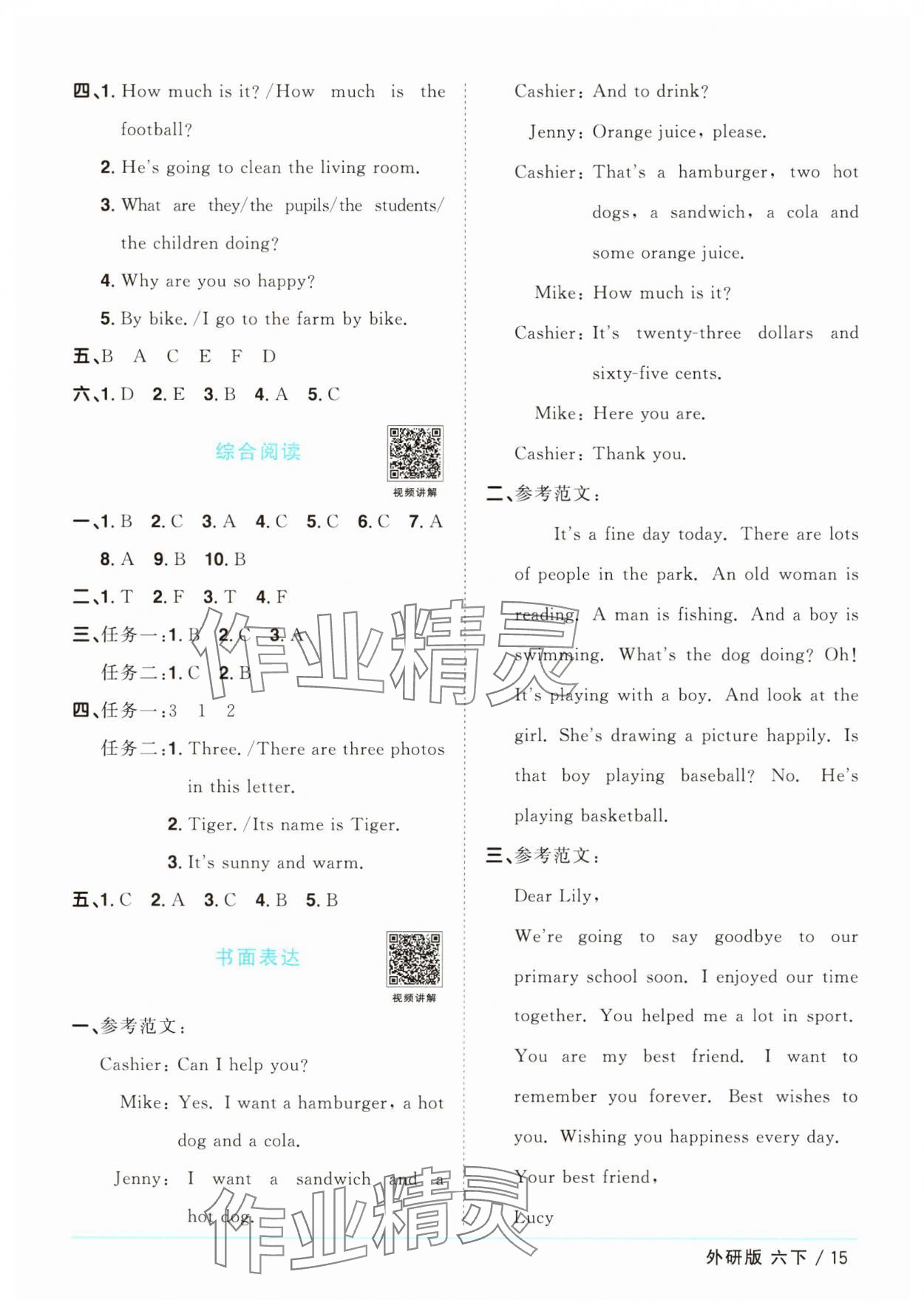注:目前有些书本章节名称可能整理的还不是很完善,但都是按照顺序排列的,请同学们按照顺序仔细查找。练习册 2025年阳光同学课时优化作业六年级英语下册外研版 答案主要是用来给同学们做完题方便对答案用的,请勿直接抄袭。