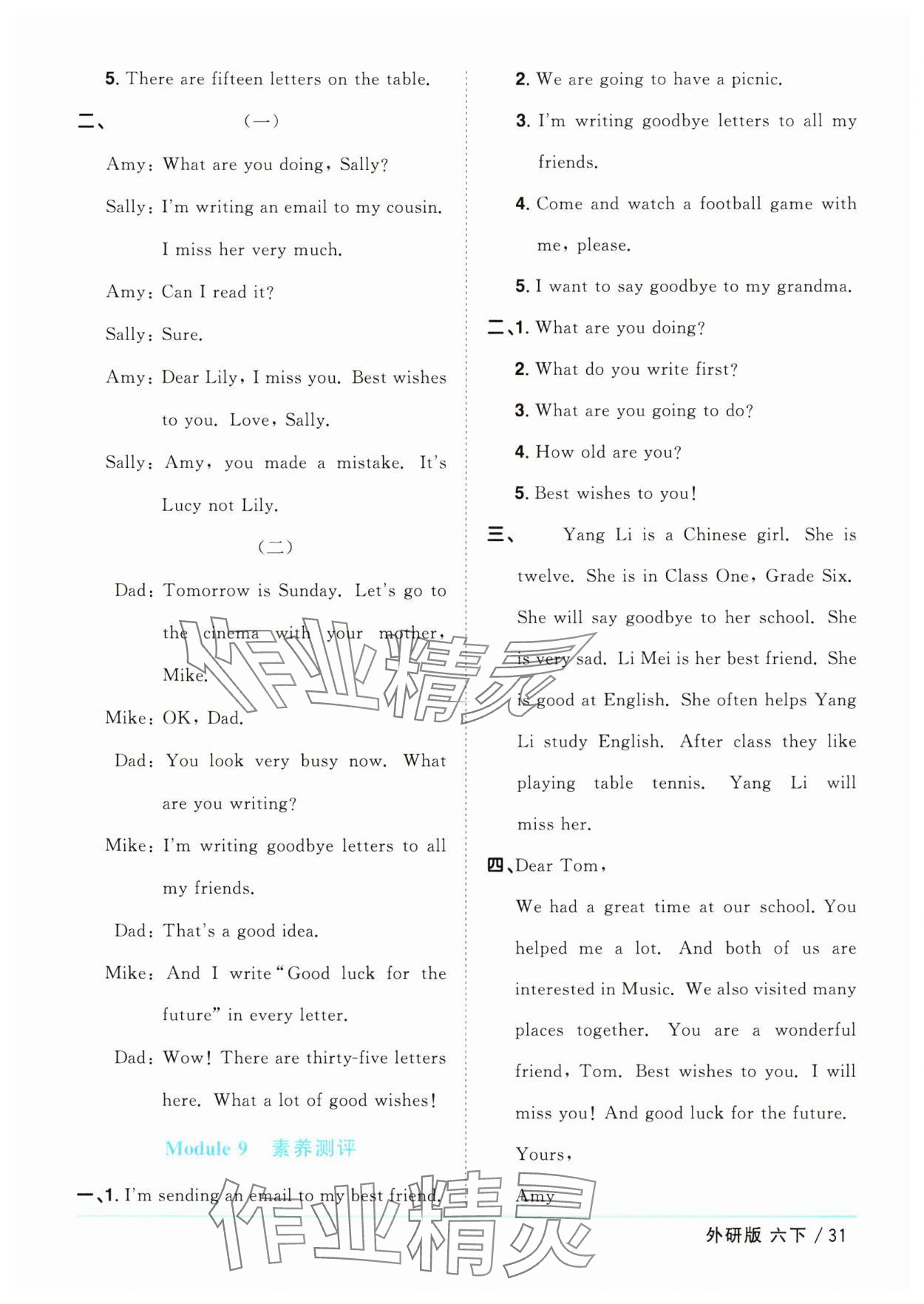 注:目前有些书本章节名称可能整理的还不是很完善,但都是按照顺序排列的,请同学们按照顺序仔细查找。练习册 2025年阳光同学课时优化作业六年级英语下册外研版 答案主要是用来给同学们做完题方便对答案用的,请勿直接抄袭。