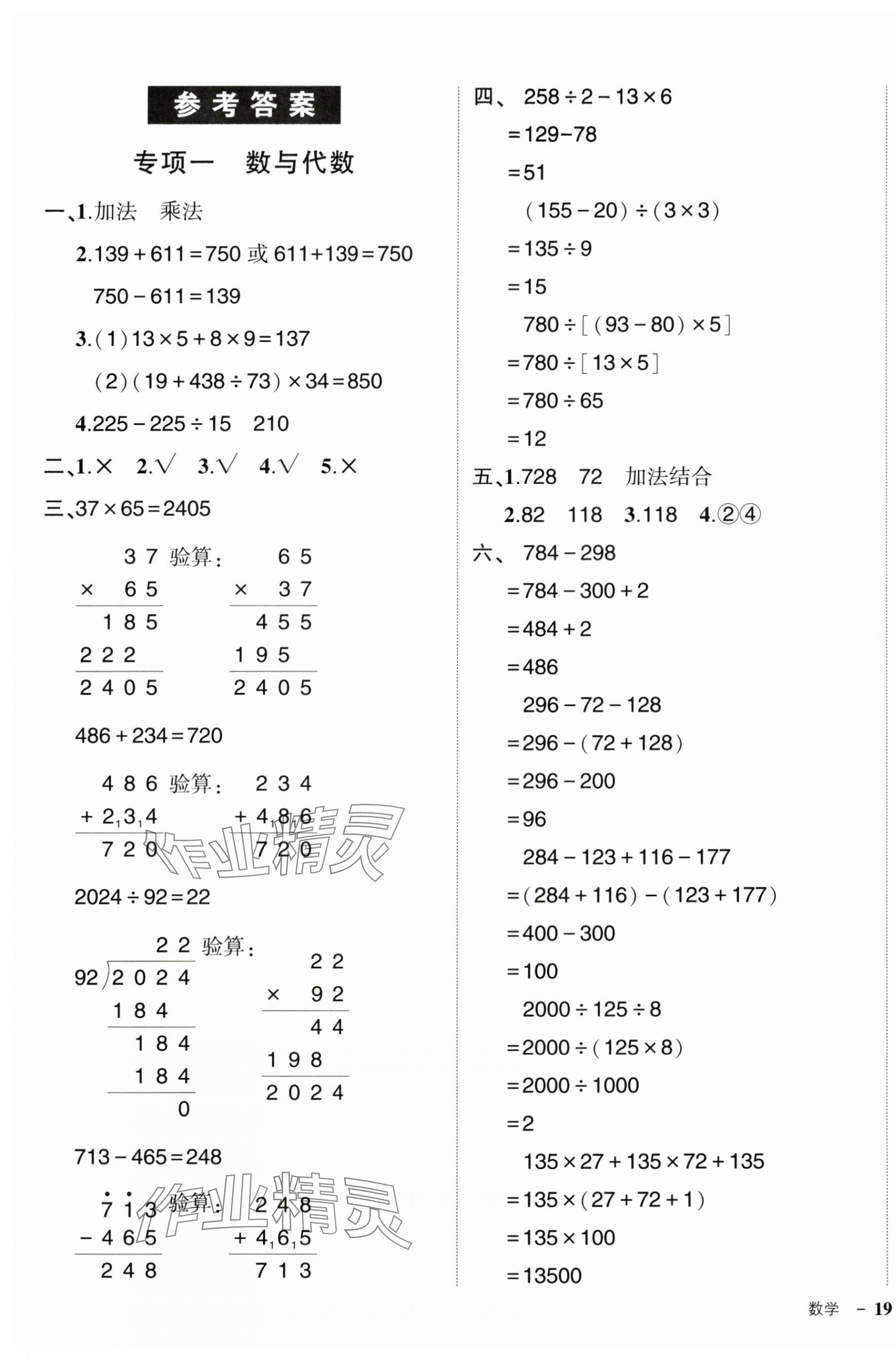 注:目前有些书本章节名称可能整理的还不是很完善,但都是按照顺序排列的,请同学们按照顺序仔细查找。练习册 2025年状元成才路创优作业100分四年级数学下册人教版浙江专版 答案主要是用来给同学们做完题方便对答案用的,请勿直接抄袭。