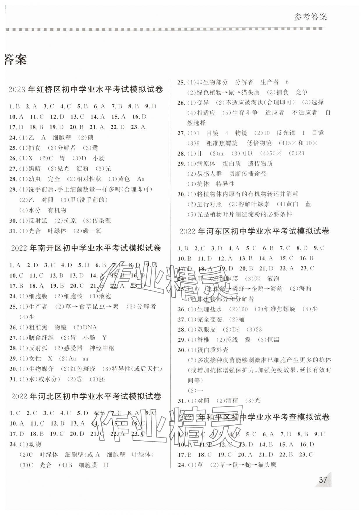 注:目前有些书本章节名称可能整理的还不是很完善,但都是按照顺序排列的,请同学们按照顺序仔细查找。练习册 2025年初中学业水平考查生物 答案主要是用来给同学们做完题方便对答案用的,请勿直接抄袭。