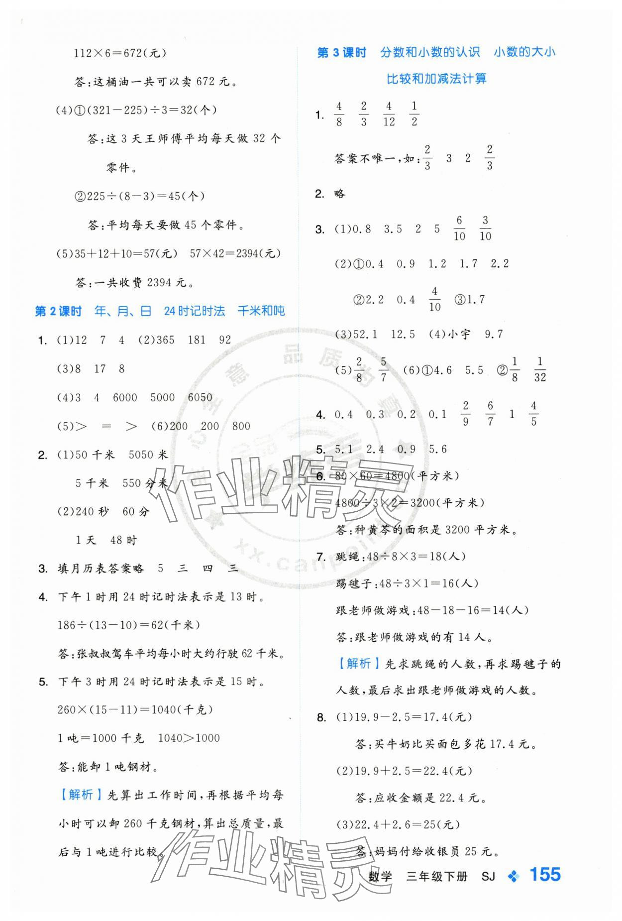 注:目前有些书本章节名称可能整理的还不是很完善,但都是按照顺序排列的,请同学们按照顺序仔细查找。练习册 2025年全品学练考三年级数学下册苏教版 答案主要是用来给同学们做完题方便对答案用的,请勿直接抄袭。