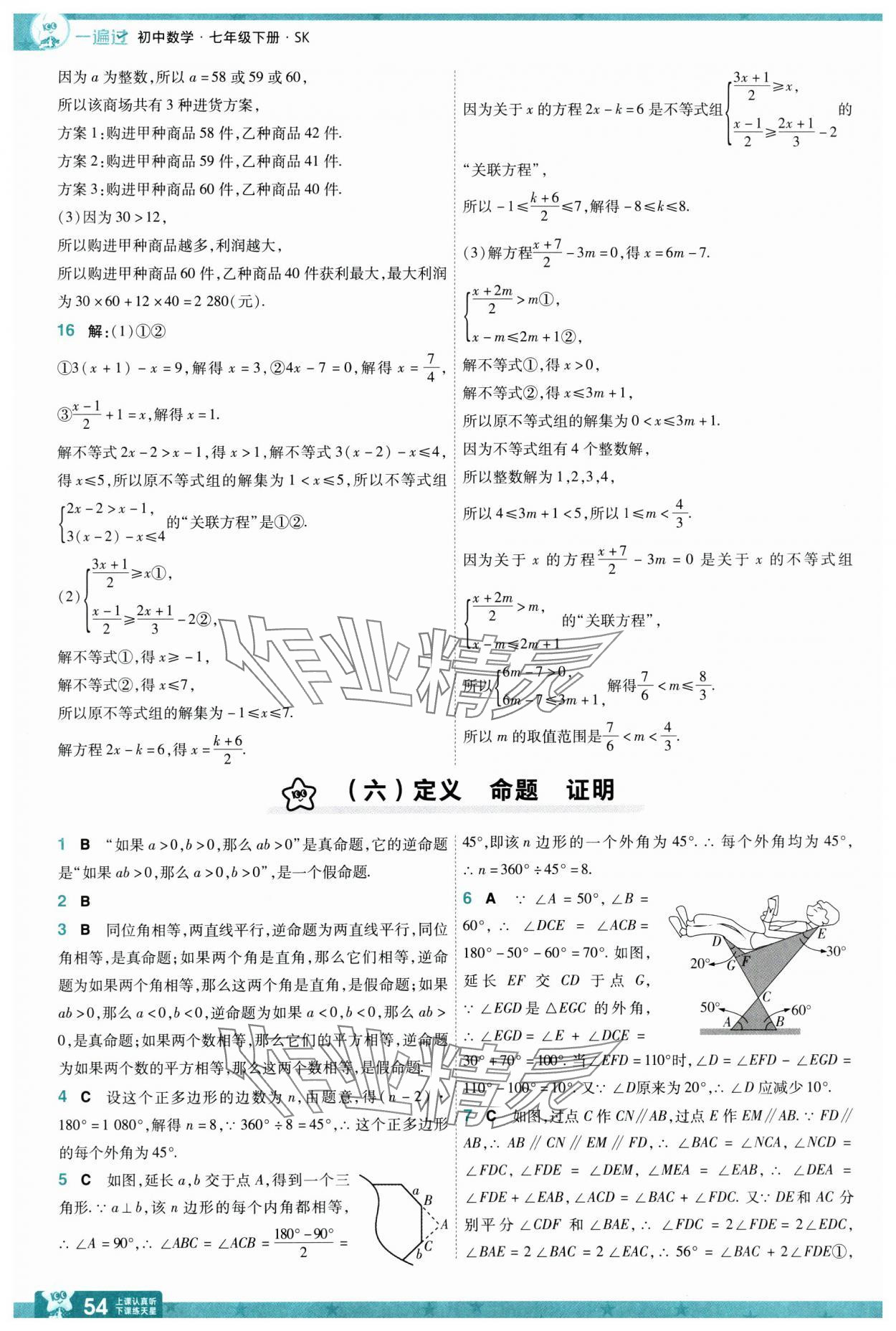 注:目前有些书本章节名称可能整理的还不是很完善,但都是按照顺序排列的,请同学们按照顺序仔细查找。练习册 2025年一遍过七年级数学下册苏科版 答案主要是用来给同学们做完题方便对答案用的,请勿直接抄袭。