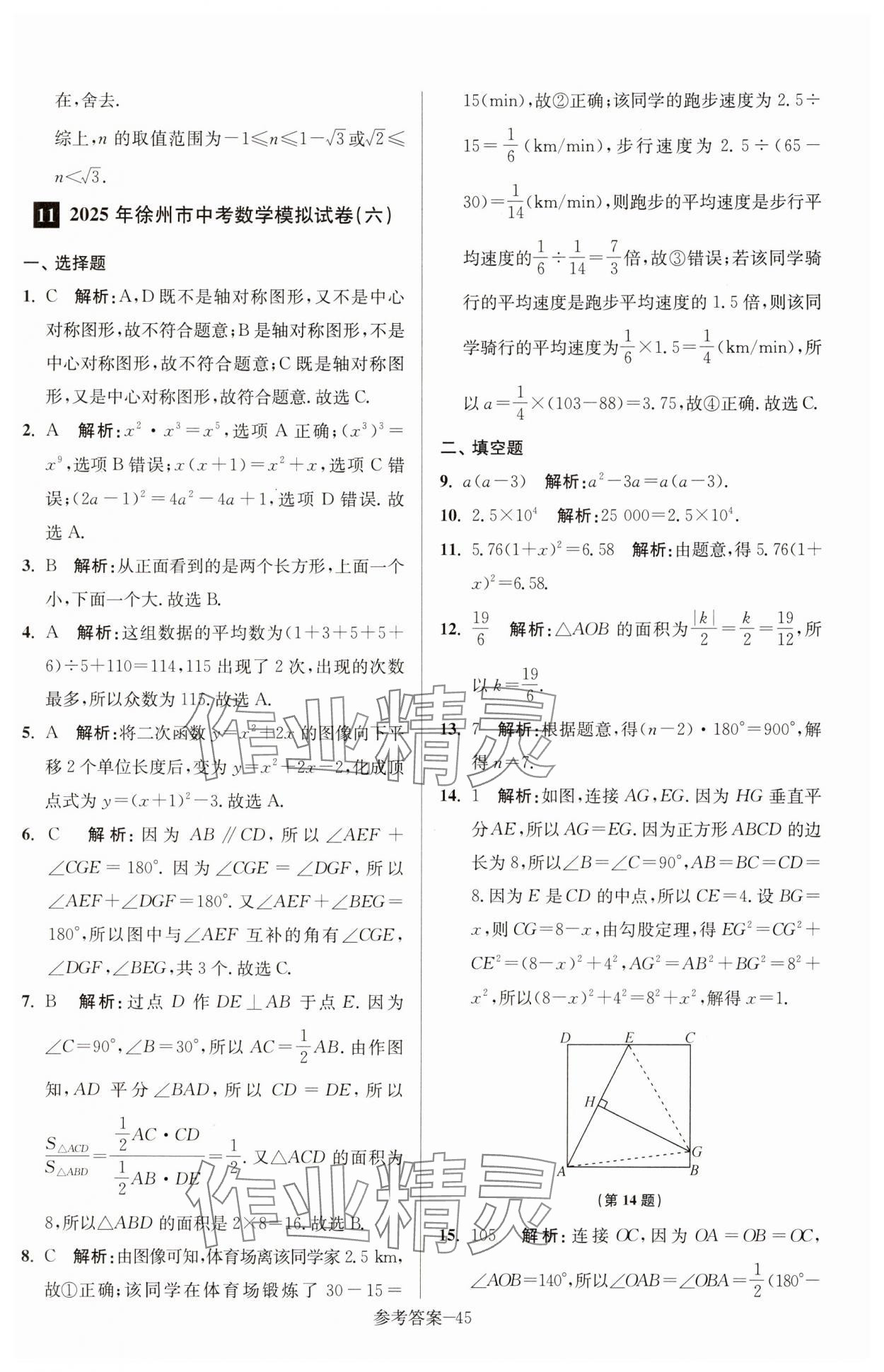 注:目前有些书本章节名称可能整理的还不是很完善,但都是按照顺序排列的,请同学们按照顺序仔细查找。练习册 2025年徐州市中考总复习一卷通历年真卷精编数学 答案主要是用来给同学们做完题方便对答案用的,请勿直接抄袭。