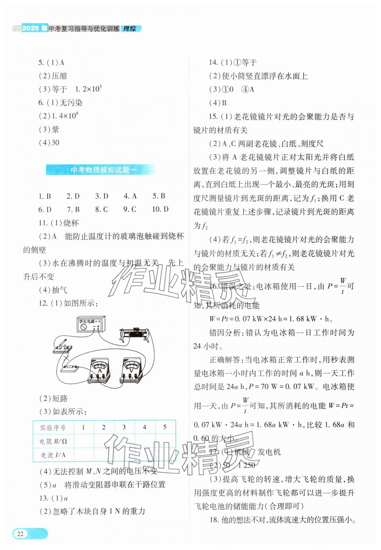 注:目前有些书本章节名称可能整理的还不是很完善,但都是按照顺序排列的,请同学们按照顺序仔细查找。练习册 2025年中考复习指导与优化训练理综 答案主要是用来给同学们做完题方便对答案用的,请勿直接抄袭。