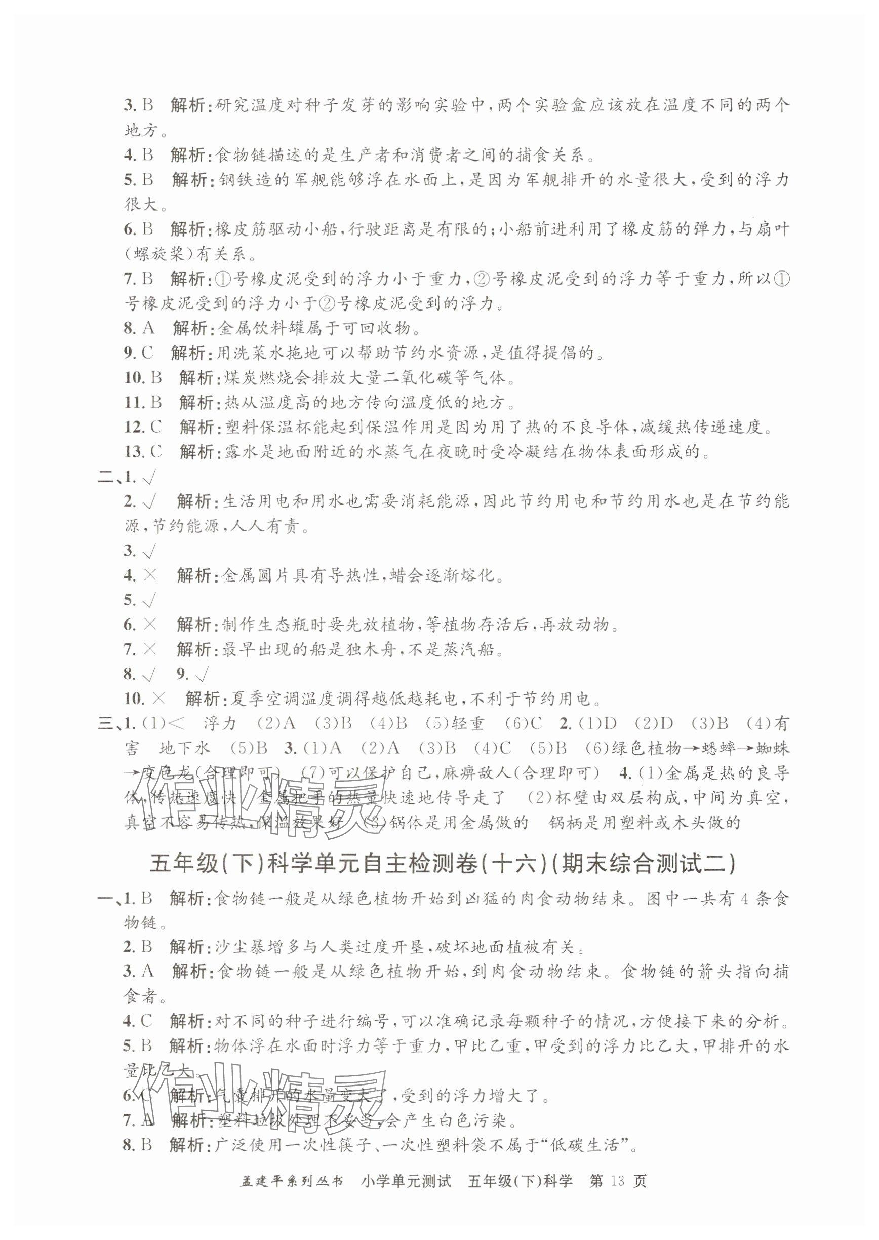 注:目前有些书本章节名称可能整理的还不是很完善,但都是按照顺序排列的,请同学们按照顺序仔细查找。练习册 2025年孟建平单元测试五年级科学下册教科版 答案主要是用来给同学们做完题方便对答案用的,请勿直接抄袭。