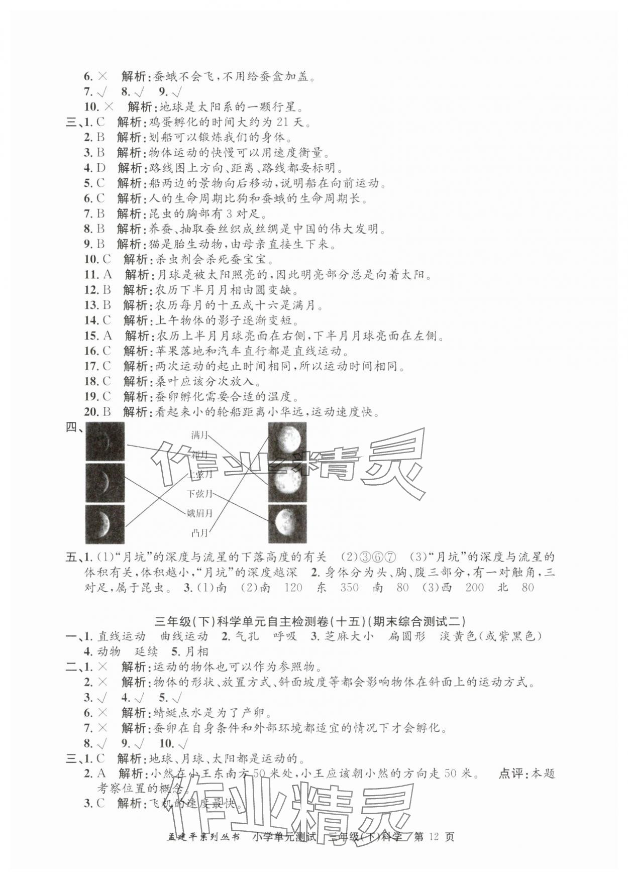 注:目前有些书本章节名称可能整理的还不是很完善,但都是按照顺序排列的,请同学们按照顺序仔细查找。练习册 2025年孟建平单元测试三年级科学下册教科版 答案主要是用来给同学们做完题方便对答案用的,请勿直接抄袭。