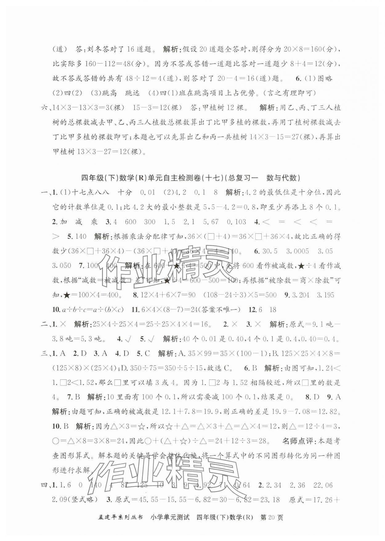 注:目前有些书本章节名称可能整理的还不是很完善,但都是按照顺序排列的,请同学们按照顺序仔细查找。练习册 2025年孟建平单元测试四年级数学下册人教版 答案主要是用来给同学们做完题方便对答案用的,请勿直接抄袭。