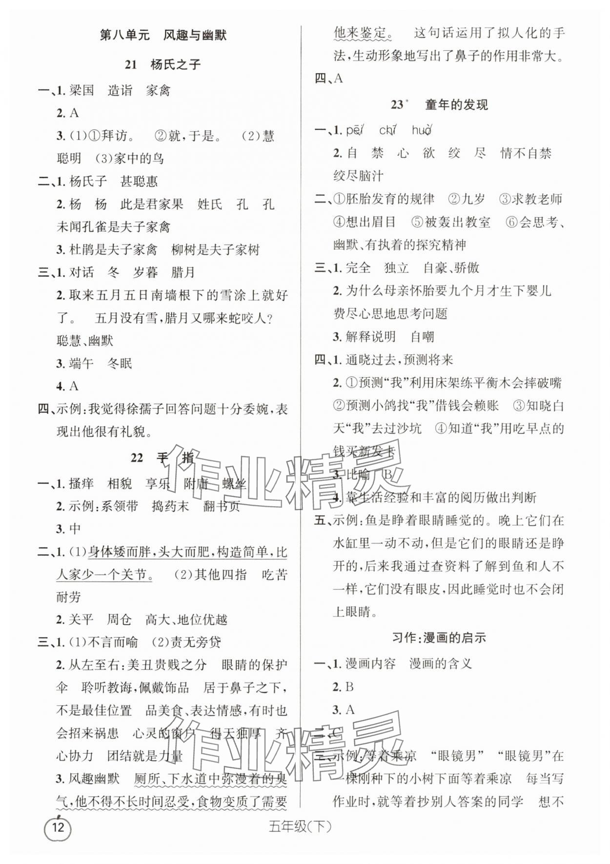 注:目前有些书本章节名称可能整理的还不是很完善,但都是按照顺序排列的,请同学们按照顺序仔细查找。练习册 2025年语文要素天天练五年级语文下册人教版浙江专版 答案主要是用来给同学们做完题方便对答案用的,请勿直接抄袭。