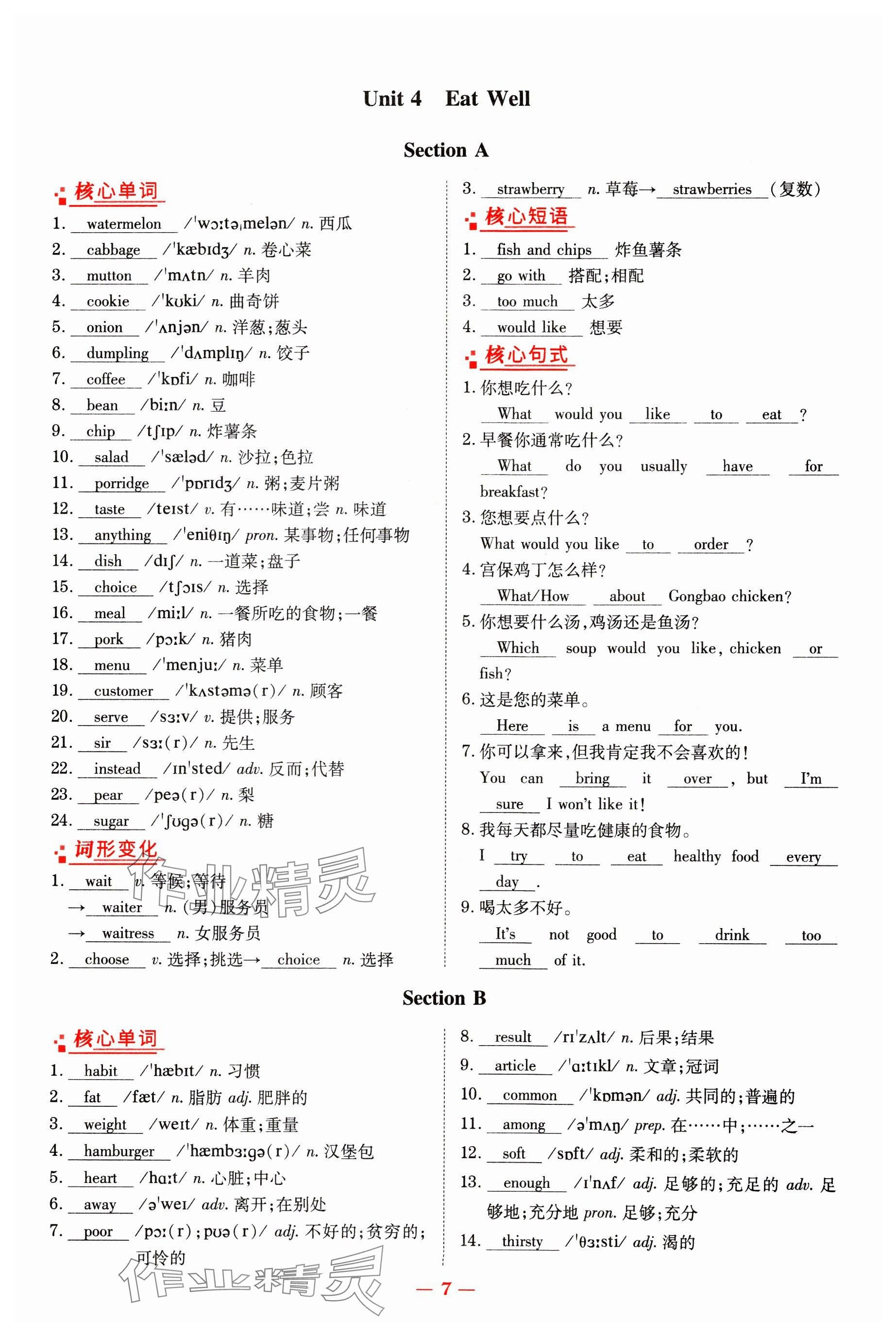 2025年初中同步学习导与练导学探究案七年级英语下册人教版