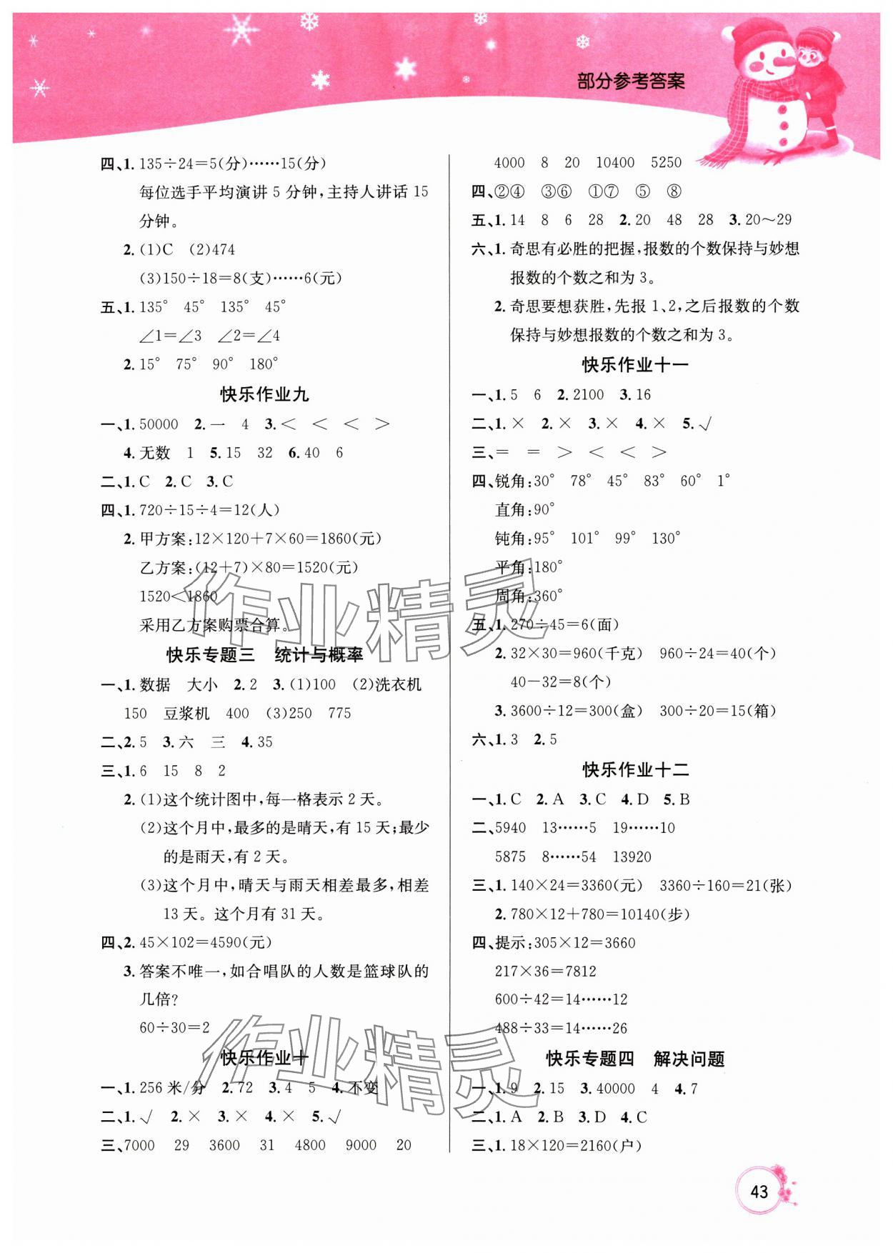 2025年快乐假期寒假作业延边教育出版社四年级数学人教版