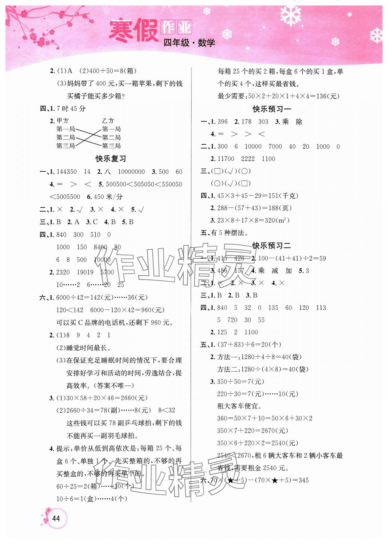 2025年快乐假期寒假作业延边教育出版社四年级数学人教版