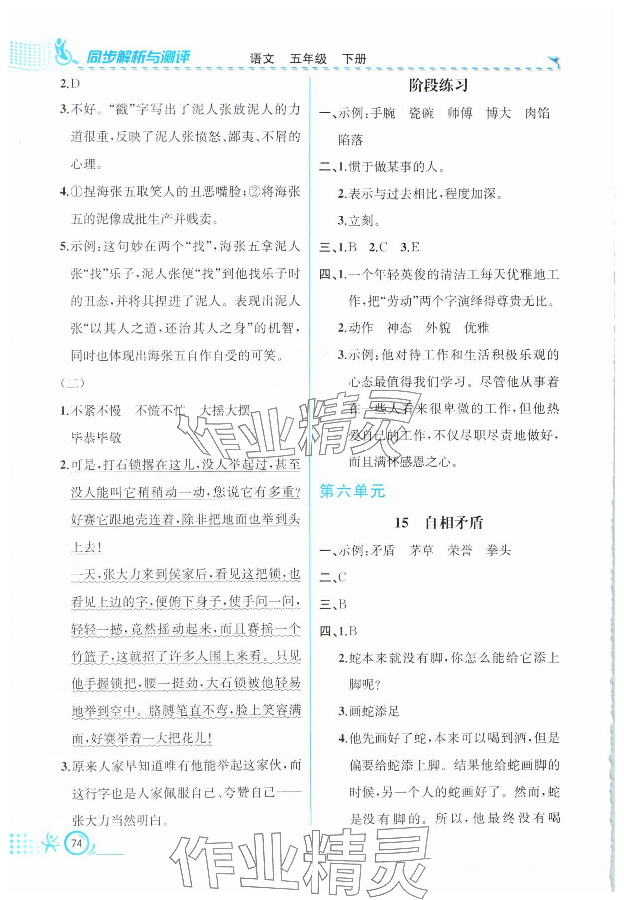 注:目前有些书本章节名称可能整理的还不是很完善,但都是按照顺序排列的,请同学们按照顺序仔细查找。练习册 2025年人教金学典同步解析与测评五年级语文下册人教版福建专版 答案主要是用来给同学们做完题方便对答案用的,请勿直接抄袭。