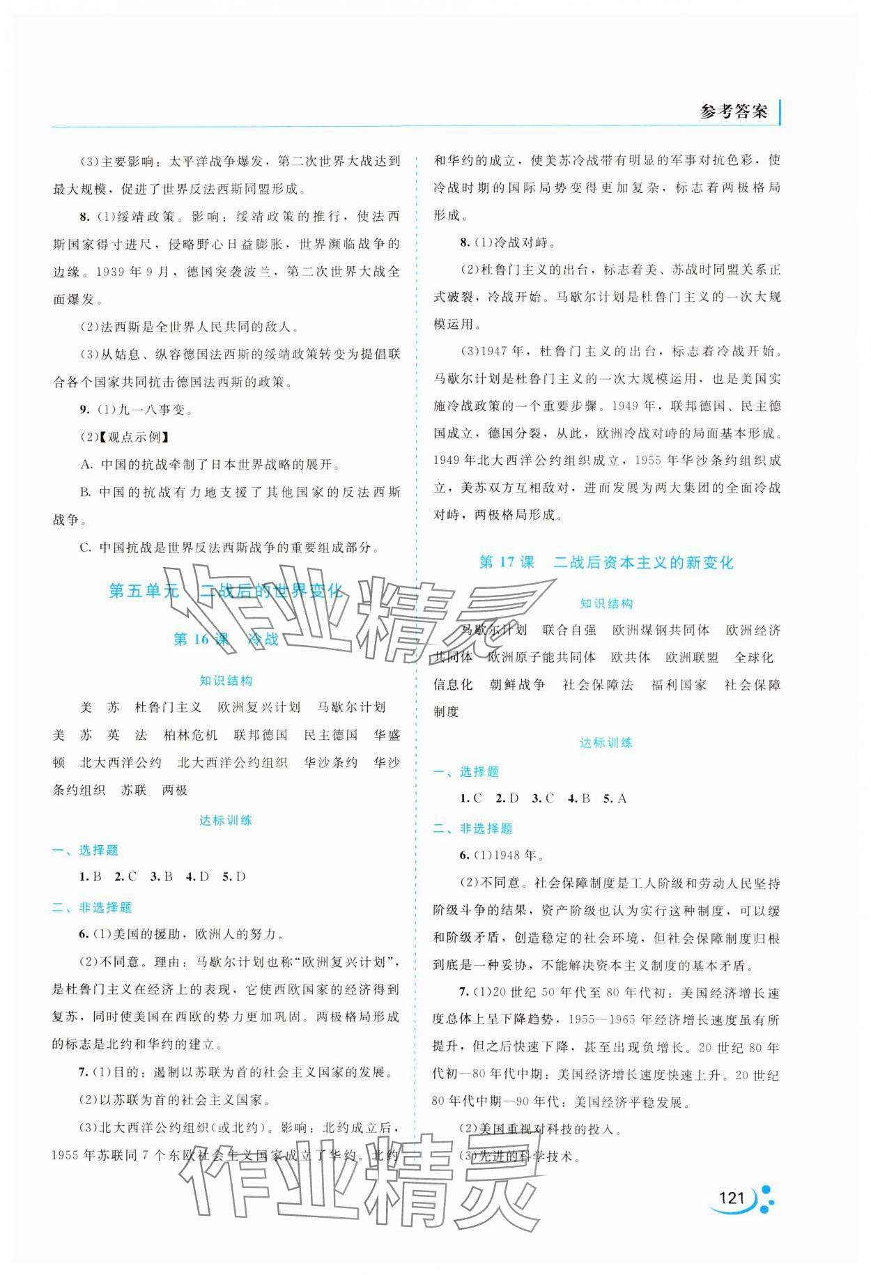 注:目前有些书本章节名称可能整理的还不是很完善,但都是按照顺序排列的,请同学们按照顺序仔细查找。练习册 2025年新课程复习与提高九年级历史下册人教版 答案主要是用来给同学们做完题方便对答案用的,请勿直接抄袭。