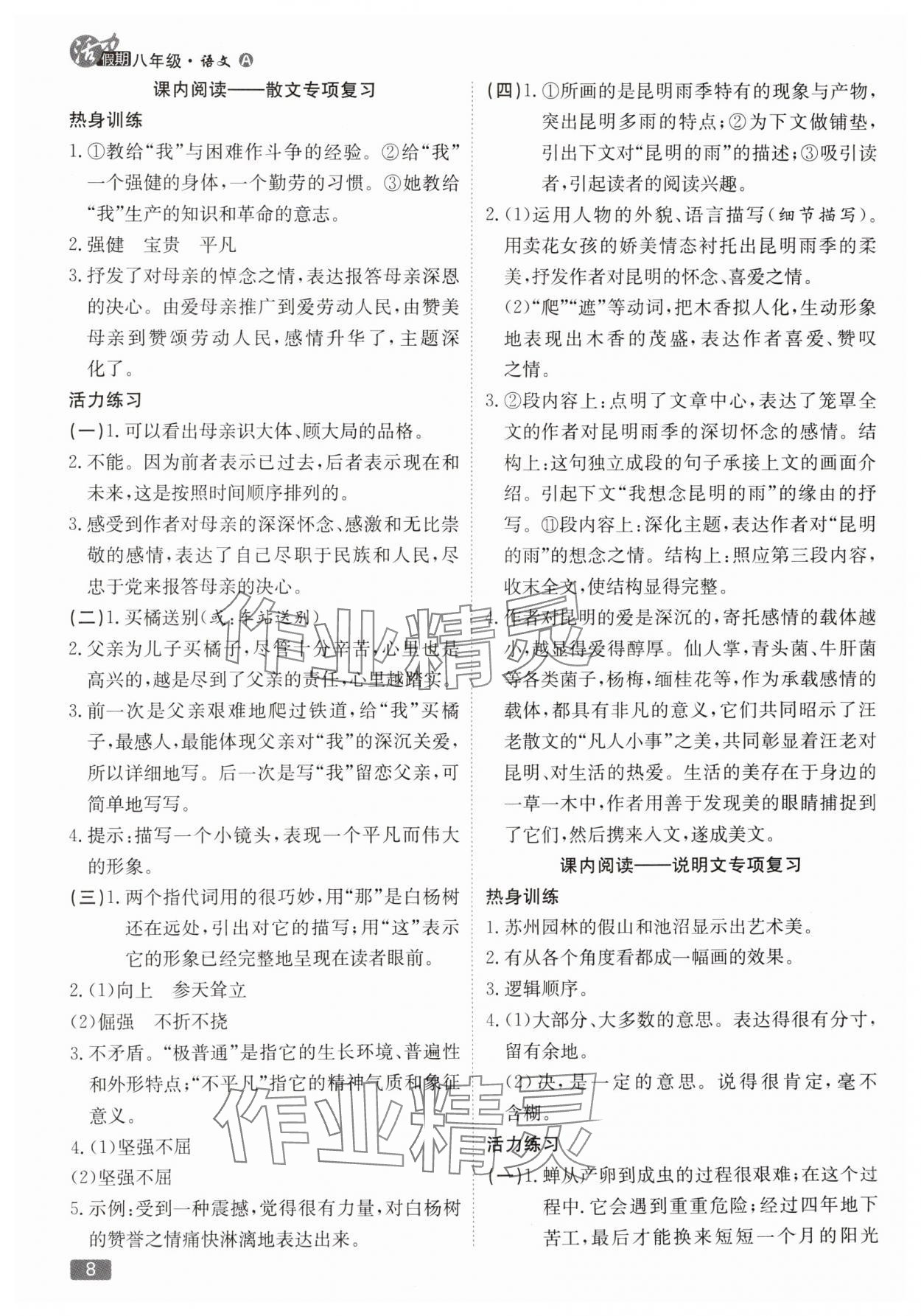 注:目前有些书本章节名称可能整理的还不是很完善,但都是按照顺序排列的,请同学们按照顺序仔细查找。练习册 2025年活力假期期末假期衔接八年级语文人教版 答案主要是用来给同学们做完题方便对答案用的,请勿直接抄袭。