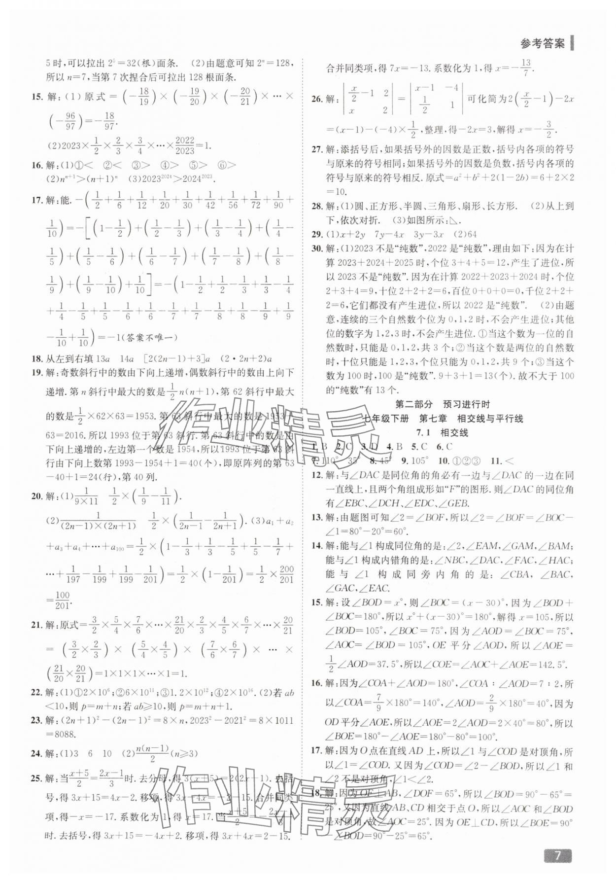 注:目前有些书本章节名称可能整理的还不是很完善,但都是按照顺序排列的,请同学们按照顺序仔细查找。练习册 2025年活力假期期末假期衔接七年级数学人教版 答案主要是用来给同学们做完题方便对答案用的,请勿直接抄袭。
