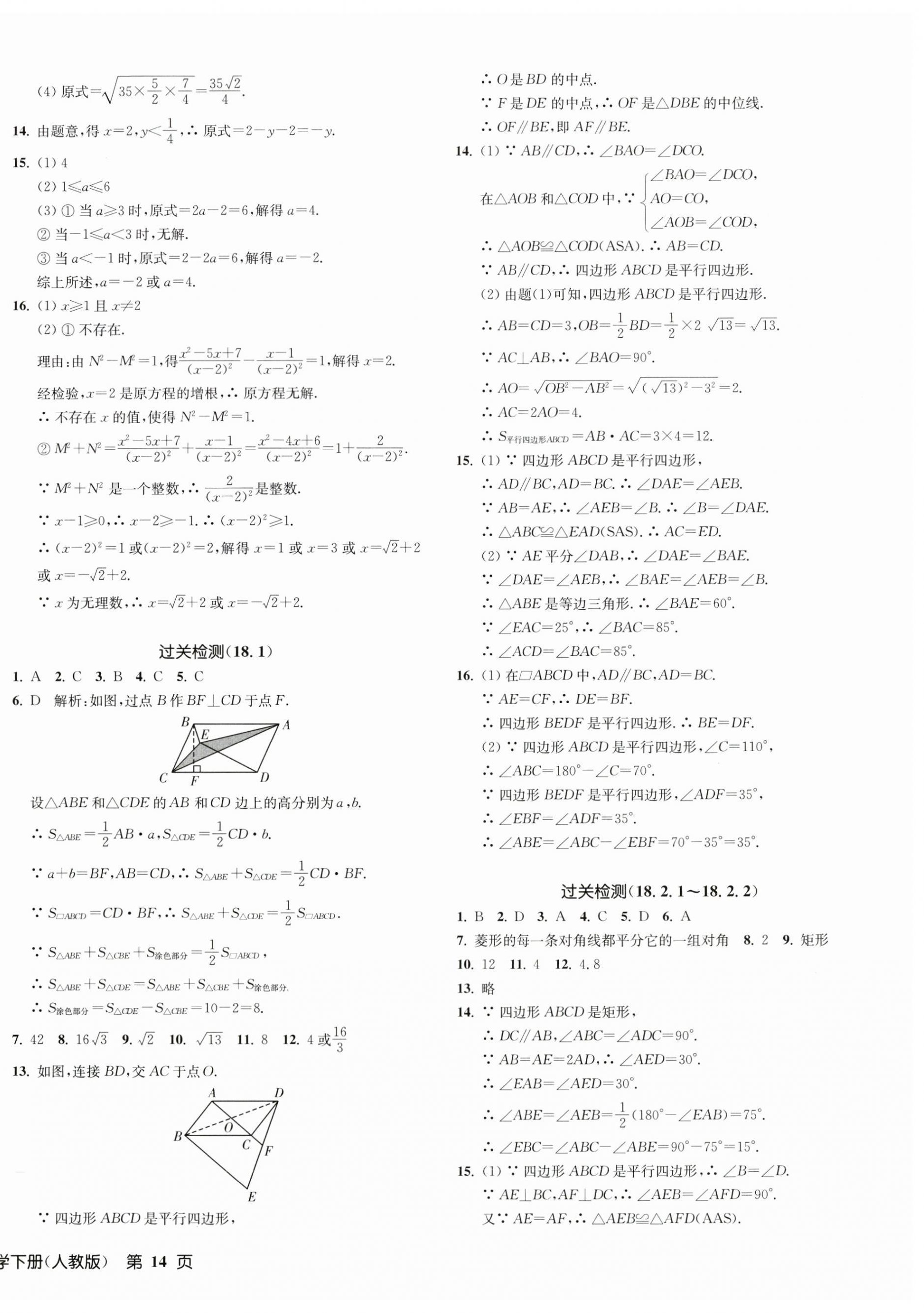 注:目前有些书本章节名称可能整理的还不是很完善,但都是按照顺序排列的,请同学们按照顺序仔细查找。练习册 2025年一阅优品作业本八年级数学下册人教版 答案主要是用来给同学们做完题方便对答案用的,请勿直接抄袭。