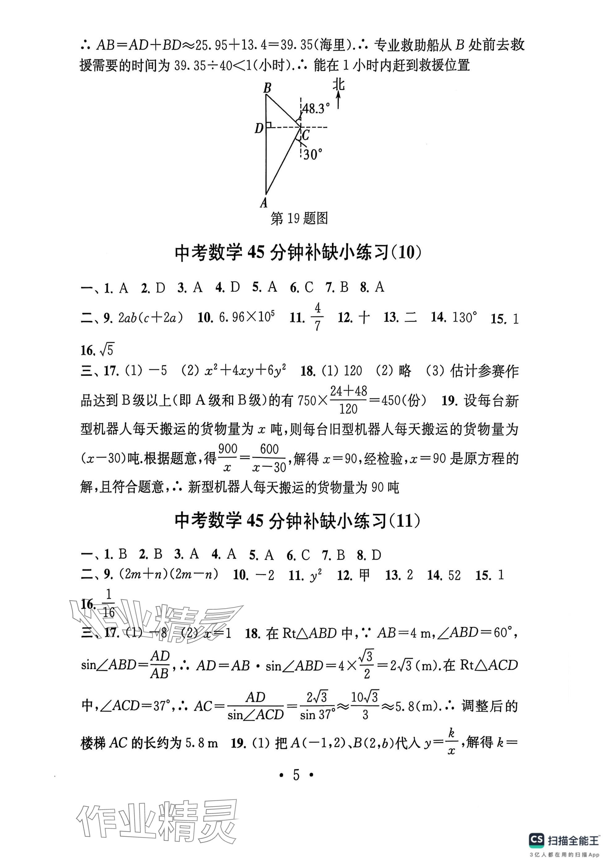 注:目前有些书本章节名称可能整理的还不是很完善,但都是按照顺序排列的,请同学们按照顺序仔细查找。练习册 2025年中考数学模拟卷45分钟补缺小练习 答案主要是用来给同学们做完题方便对答案用的,请勿直接抄袭。