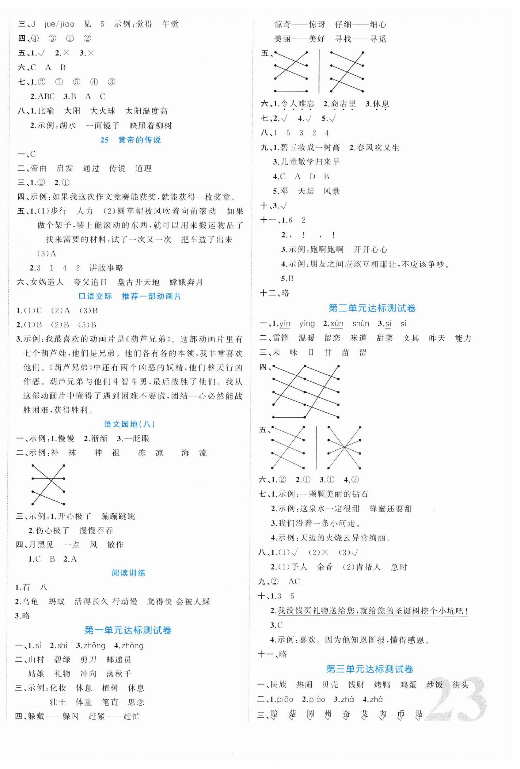 注:目前有些书本章节名称可能整理的还不是很完善,但都是按照顺序排列的,请同学们按照顺序仔细查找。练习册 2025年黄冈新课堂二年级语文下册人教版 答案主要是用来给同学们做完题方便对答案用的,请勿直接抄袭。