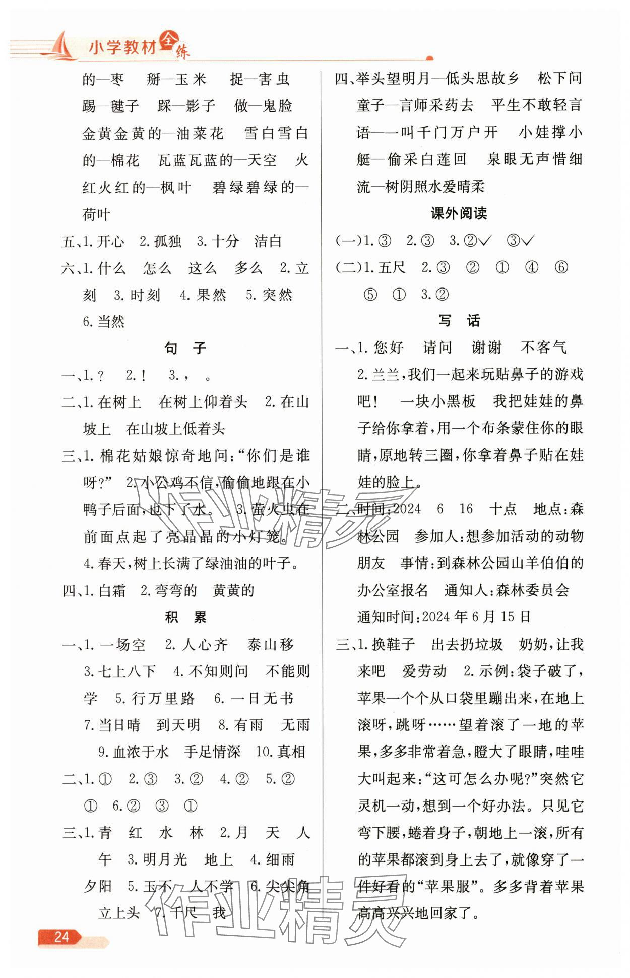 注:目前有些书本章节名称可能整理的还不是很完善,但都是按照顺序排列的,请同学们按照顺序仔细查找。练习册 2025年教材全练一年级语文下册人教版 答案主要是用来给同学们做完题方便对答案用的,请勿直接抄袭。