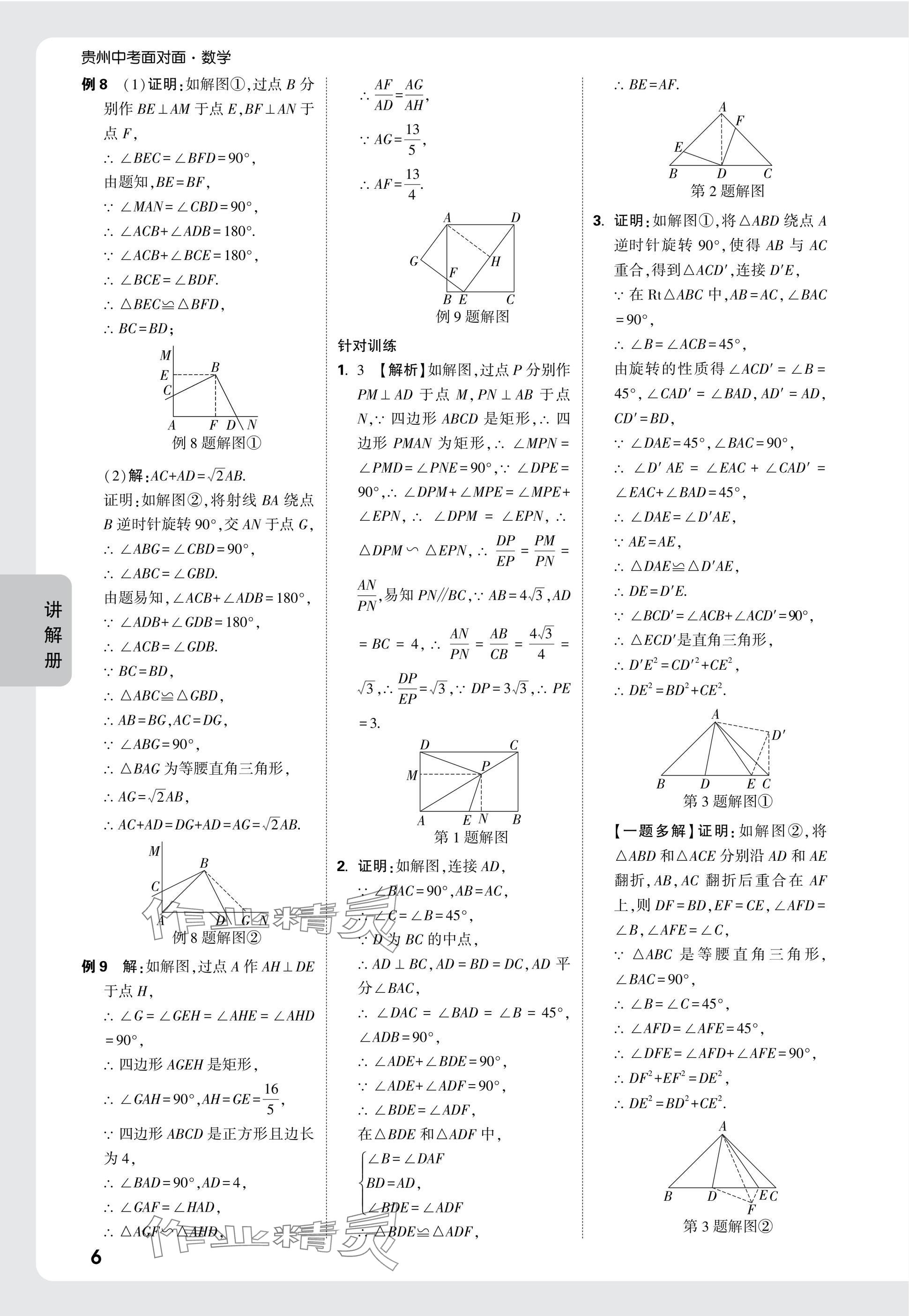 注:目前有些书本章节名称可能整理的还不是很完善,但都是按照顺序排列的,请同学们按照顺序仔细查找。练习册 2025年中考面对面九年级数学贵州专版 答案主要是用来给同学们做完题方便对答案用的,请勿直接抄袭。