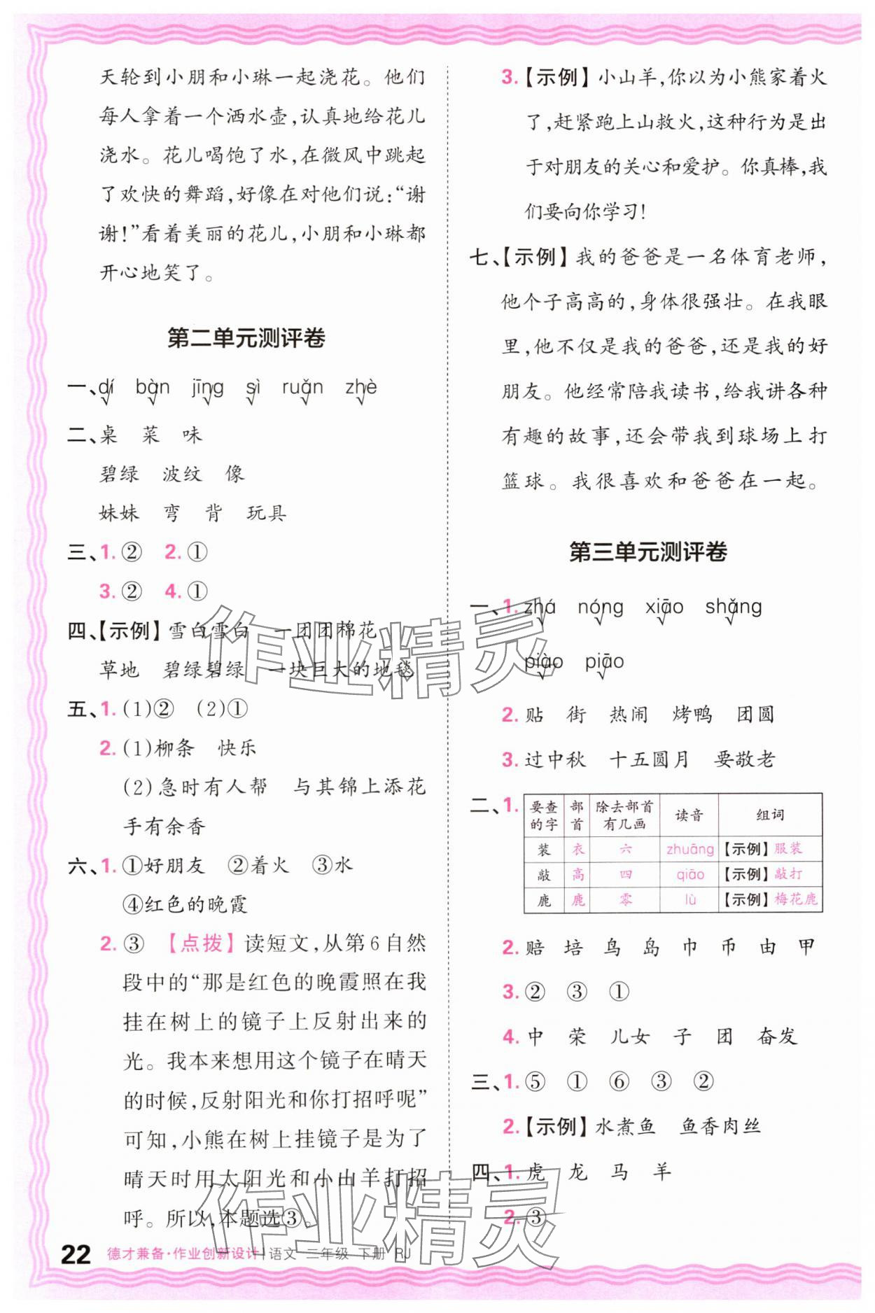 注:目前有些书本章节名称可能整理的还不是很完善,但都是按照顺序排列的,请同学们按照顺序仔细查找。练习册 2025年王朝霞德才兼备作业创新设计二年级语文下册人教版 答案主要是用来给同学们做完题方便对答案用的,请勿直接抄袭。