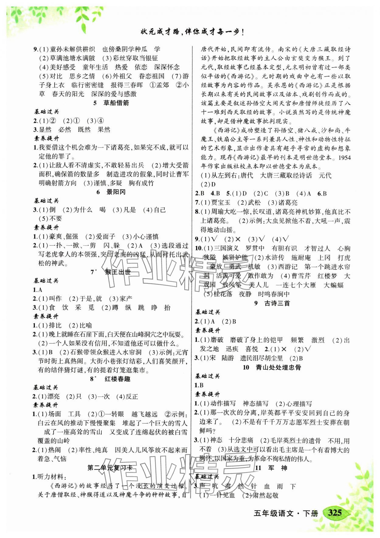 注:目前有些书本章节名称可能整理的还不是很完善,但都是按照顺序排列的,请同学们按照顺序仔细查找。练习册 2025年黄冈状元成才路状元大课堂五年级语文下册人教版河南专版 答案主要是用来给同学们做完题方便对答案用的,请勿直接抄袭。