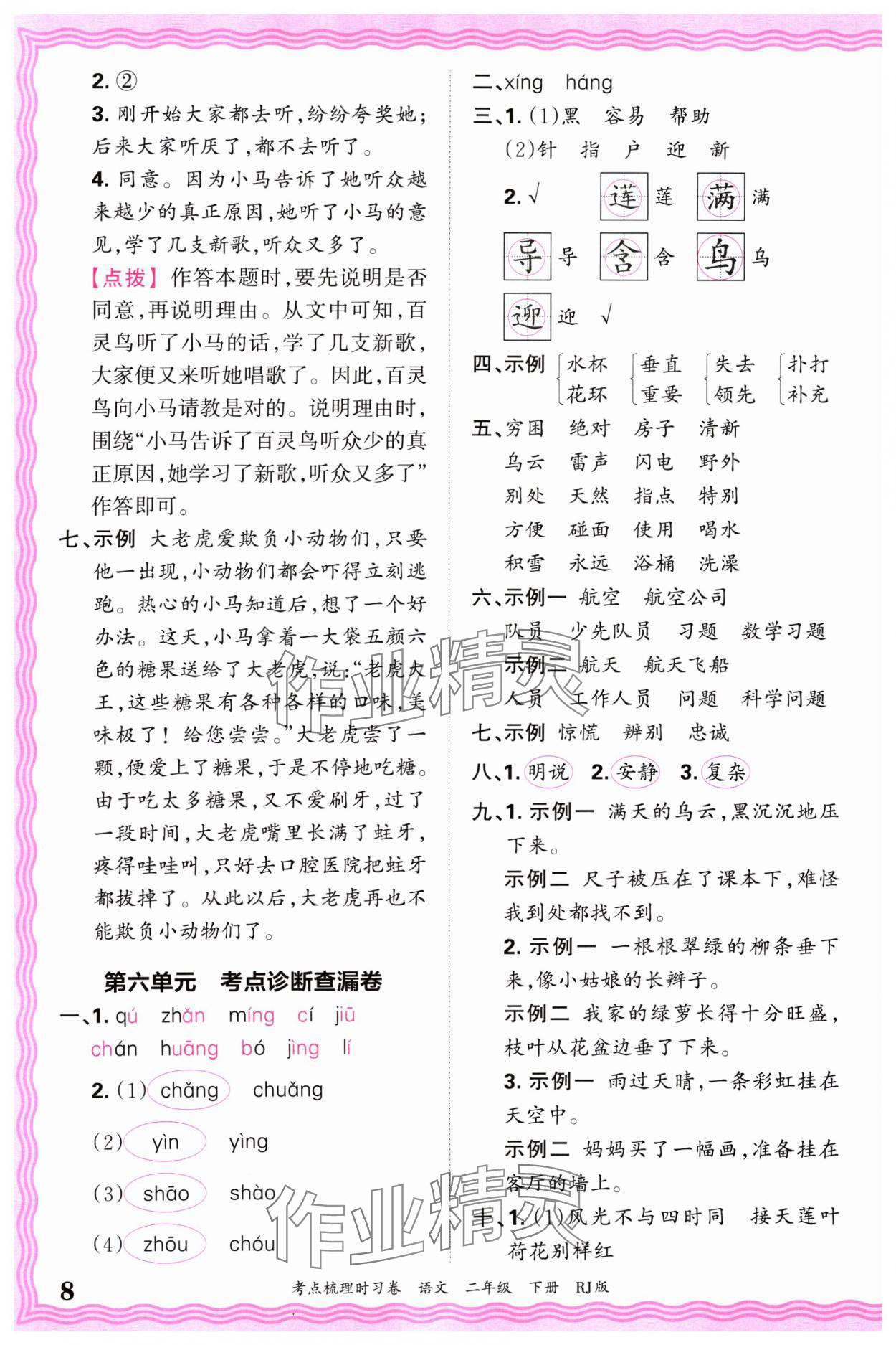 注:目前有些书本章节名称可能整理的还不是很完善,但都是按照顺序排列的,请同学们按照顺序仔细查找。练习册 2025年王朝霞考点梳理时习卷二年级语文下册人教版 答案主要是用来给同学们做完题方便对答案用的,请勿直接抄袭。