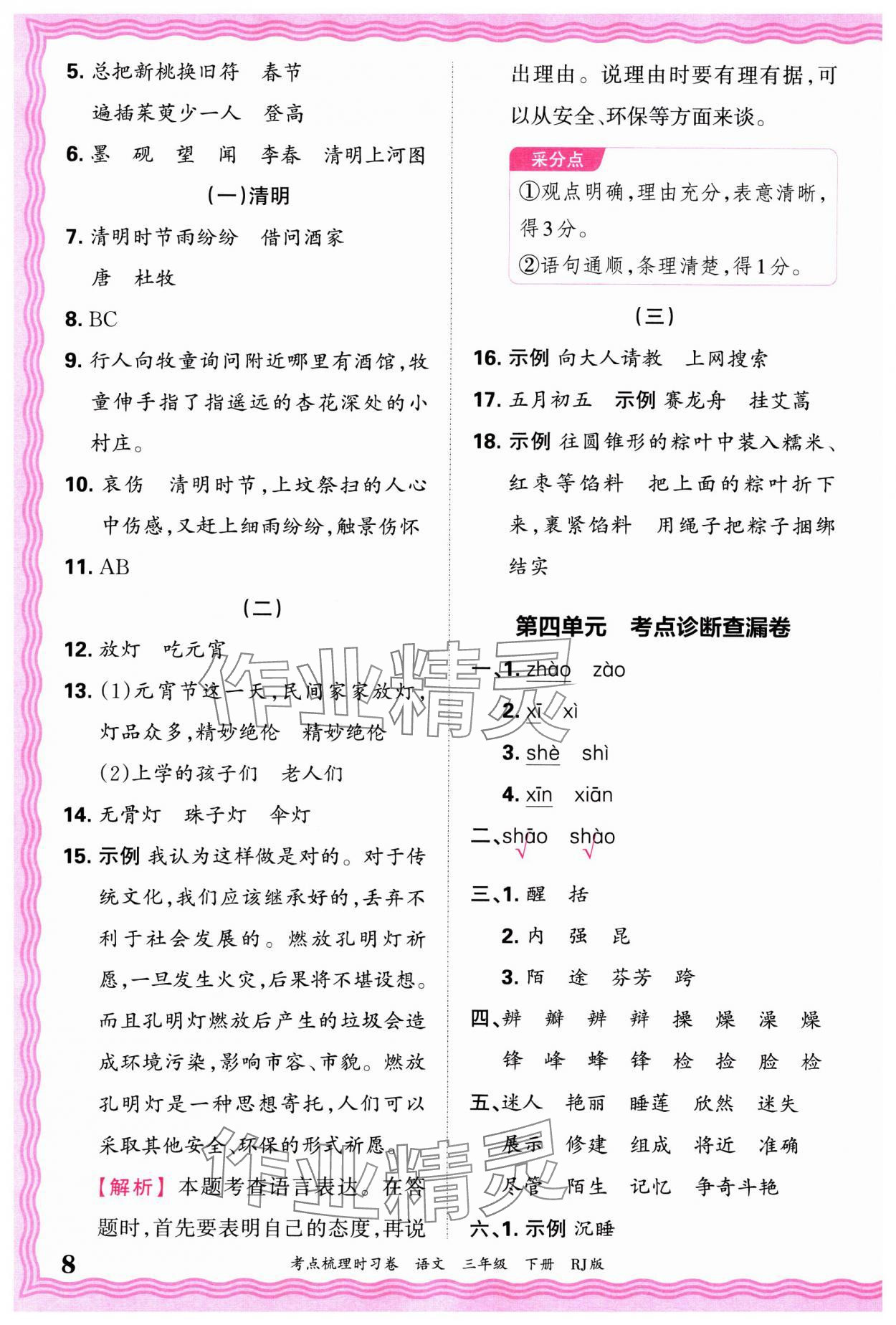精英家教网> 2025年王朝霞考点梳理时习卷三年级语文下册人教版 > 第8页 参考答案