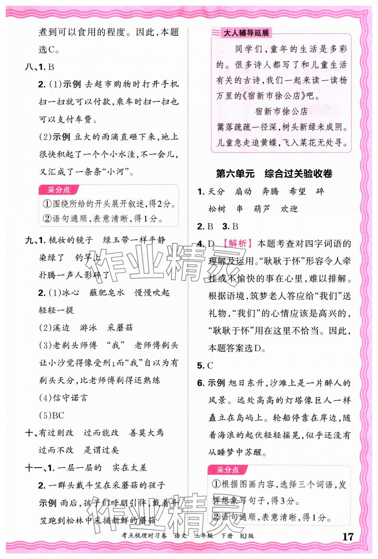 注:目前有些书本章节名称可能整理的还不是很完善,但都是按照顺序排列的,请同学们按照顺序仔细查找。练习册 2025年王朝霞考点梳理时习卷三年级语文下册人教版 答案主要是用来给同学们做完题方便对答案用的,请勿直接抄袭。