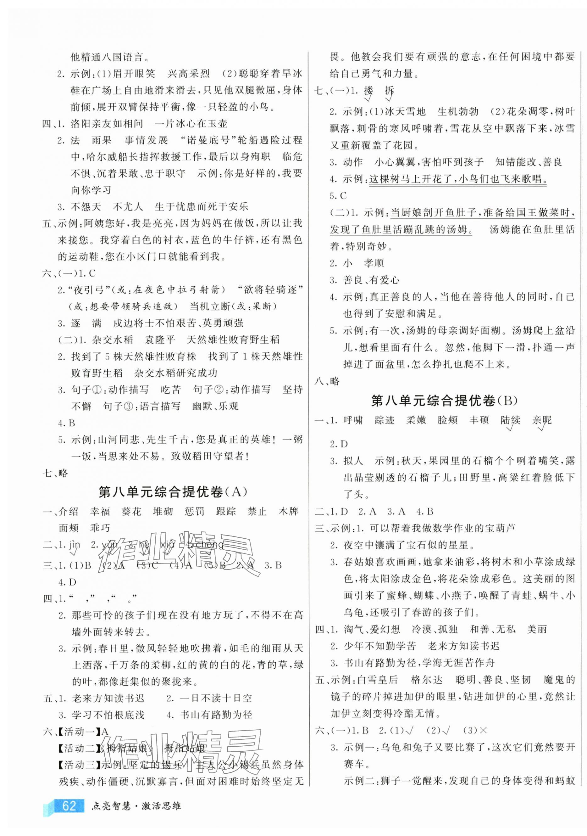注:目前有些书本章节名称可能整理的还不是很完善,但都是按照顺序排列的,请同学们按照顺序仔细查找。练习册 2025年亮点激活提优大试卷四年级语文下册人教版 答案主要是用来给同学们做完题方便对答案用的,请勿直接抄袭。