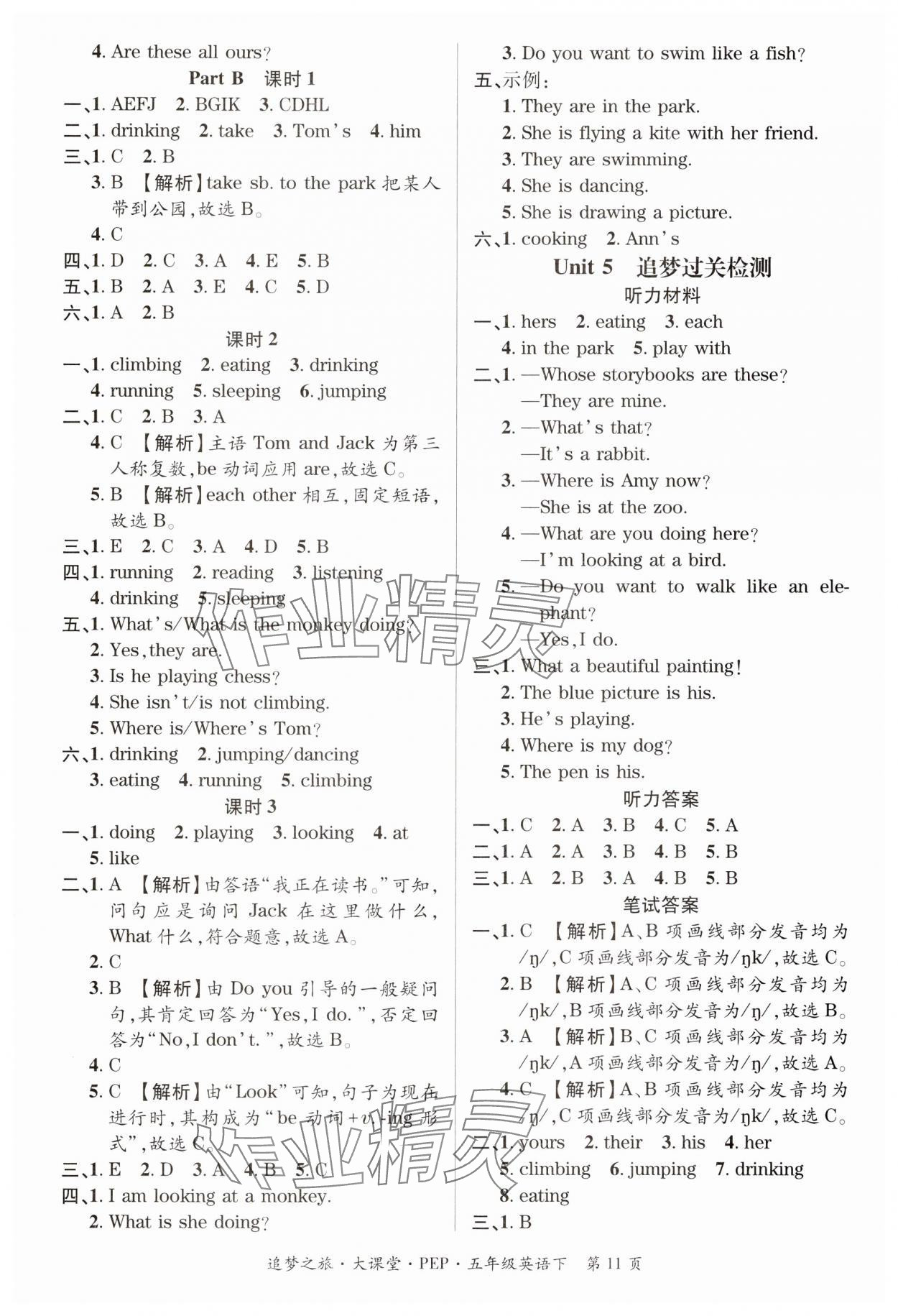 注:目前有些书本章节名称可能整理的还不是很完善,但都是按照顺序排列的,请同学们按照顺序仔细查找。练习册 2025年追梦之旅大课堂五年级英语下册人教版河南专版 答案主要是用来给同学们做完题方便对答案用的,请勿直接抄袭。