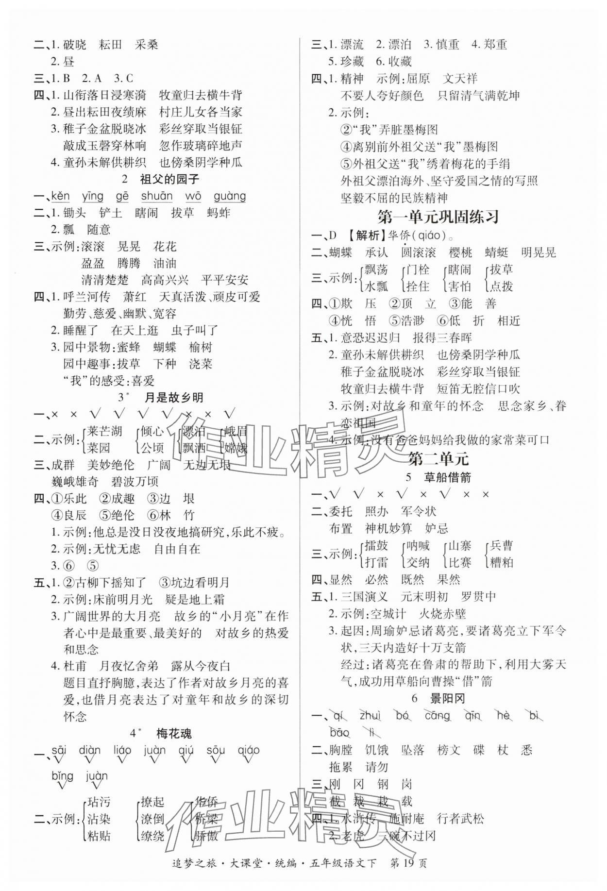 注:目前有些书本章节名称可能整理的还不是很完善,但都是按照顺序排列的,请同学们按照顺序仔细查找。练习册 2025年追梦之旅大课堂五年级语文下册人教版河南专版 答案主要是用来给同学们做完题方便对答案用的,请勿直接抄袭。