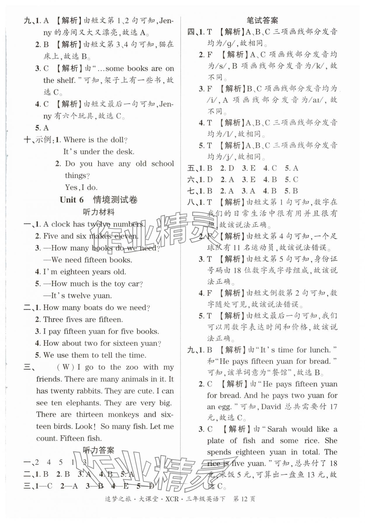 注:目前有些书本章节名称可能整理的还不是很完善,但都是按照顺序排列的,请同学们按照顺序仔细查找。练习册 2025年追梦之旅大课堂三年级英语下册人教版河南专版 答案主要是用来给同学们做完题方便对答案用的,请勿直接抄袭。