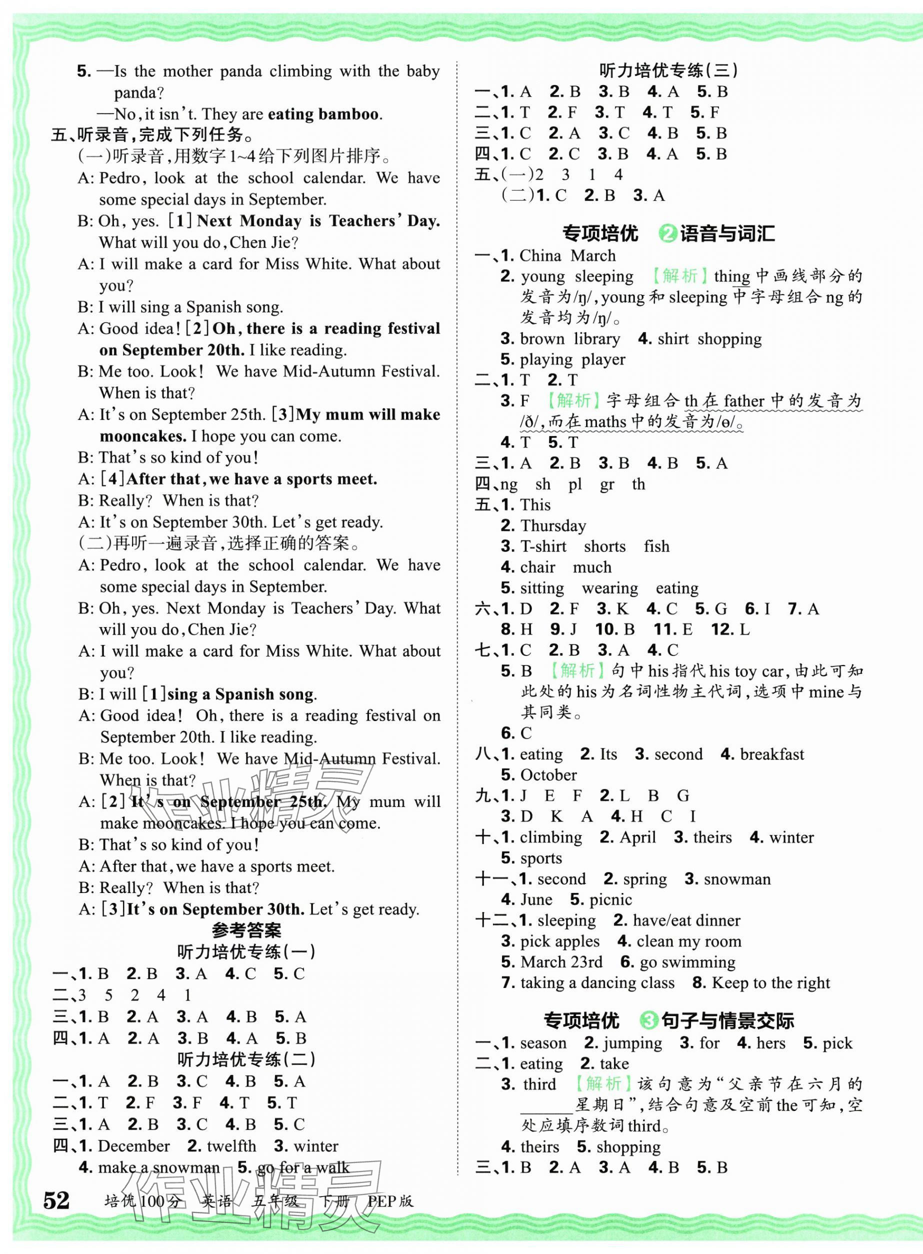 注:目前有些书本章节名称可能整理的还不是很完善,但都是按照顺序排列的,请同学们按照顺序仔细查找。练习册 2025年王朝霞培优100分五年级英语下册人教版 答案主要是用来给同学们做完题方便对答案用的,请勿直接抄袭。