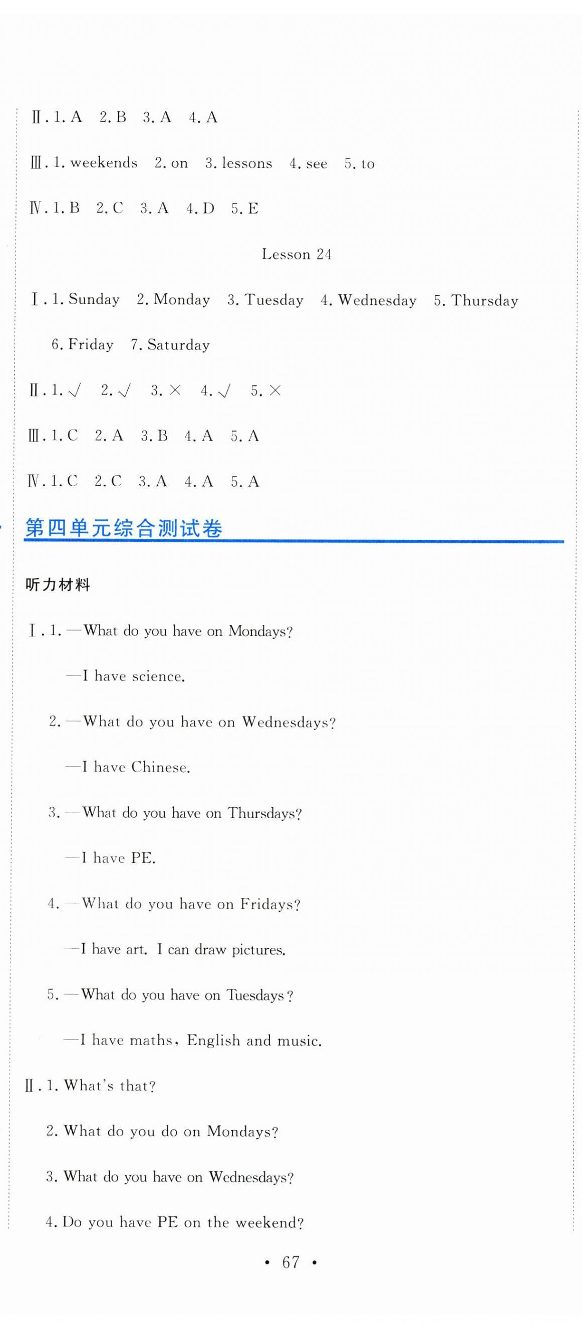 注:目前有些书本章节名称可能整理的还不是很完善,但都是按照顺序排列的,请同学们按照顺序仔细查找。练习册 2025年提分教练四年级英语下册人教精通版 答案主要是用来给同学们做完题方便对答案用的,请勿直接抄袭。