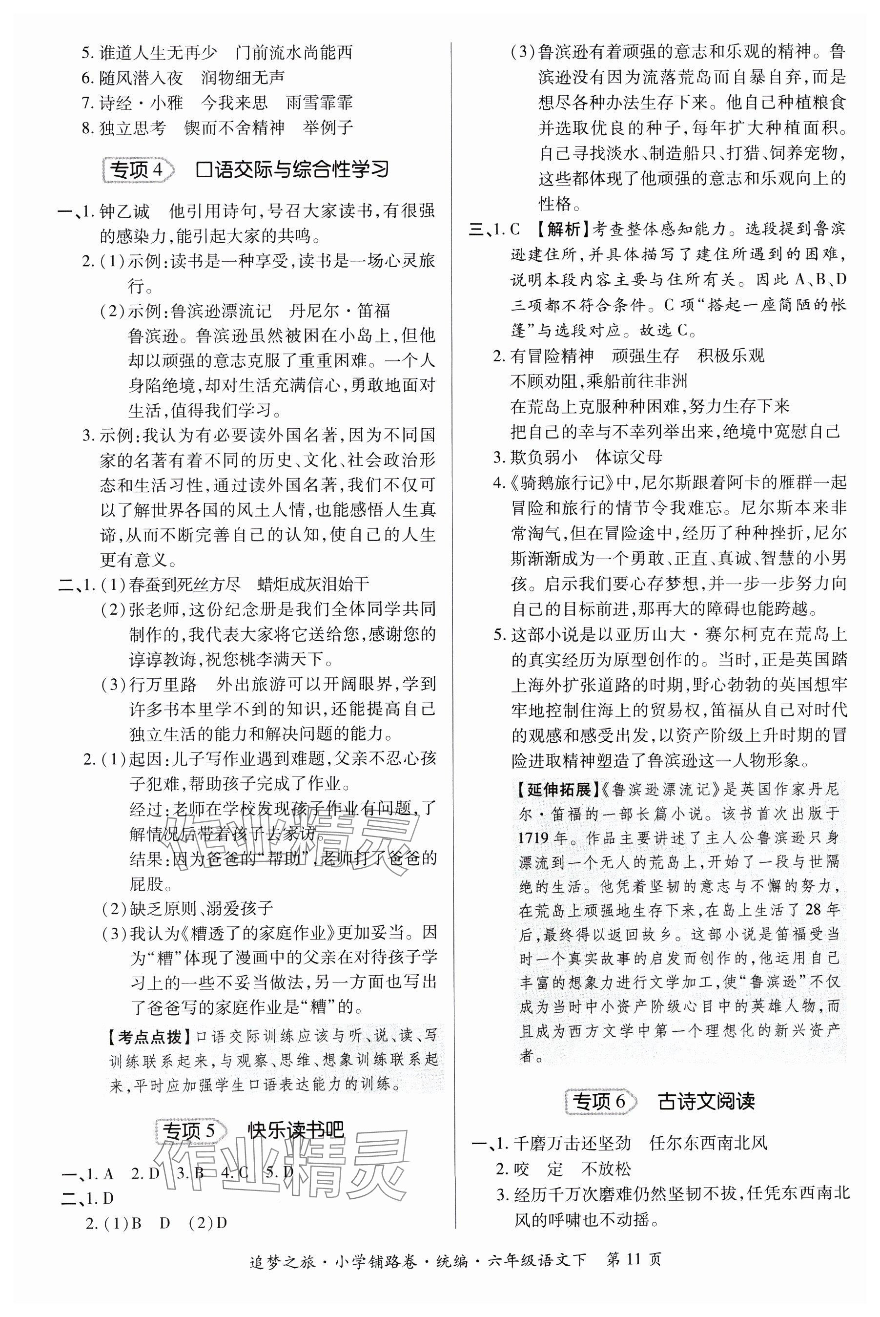 注:目前有些书本章节名称可能整理的还不是很完善,但都是按照顺序排列的,请同学们按照顺序仔细查找。练习册 2025年追梦之旅铺路卷六年级语文下册人教版河南专版 答案主要是用来给同学们做完题方便对答案用的,请勿直接抄袭。