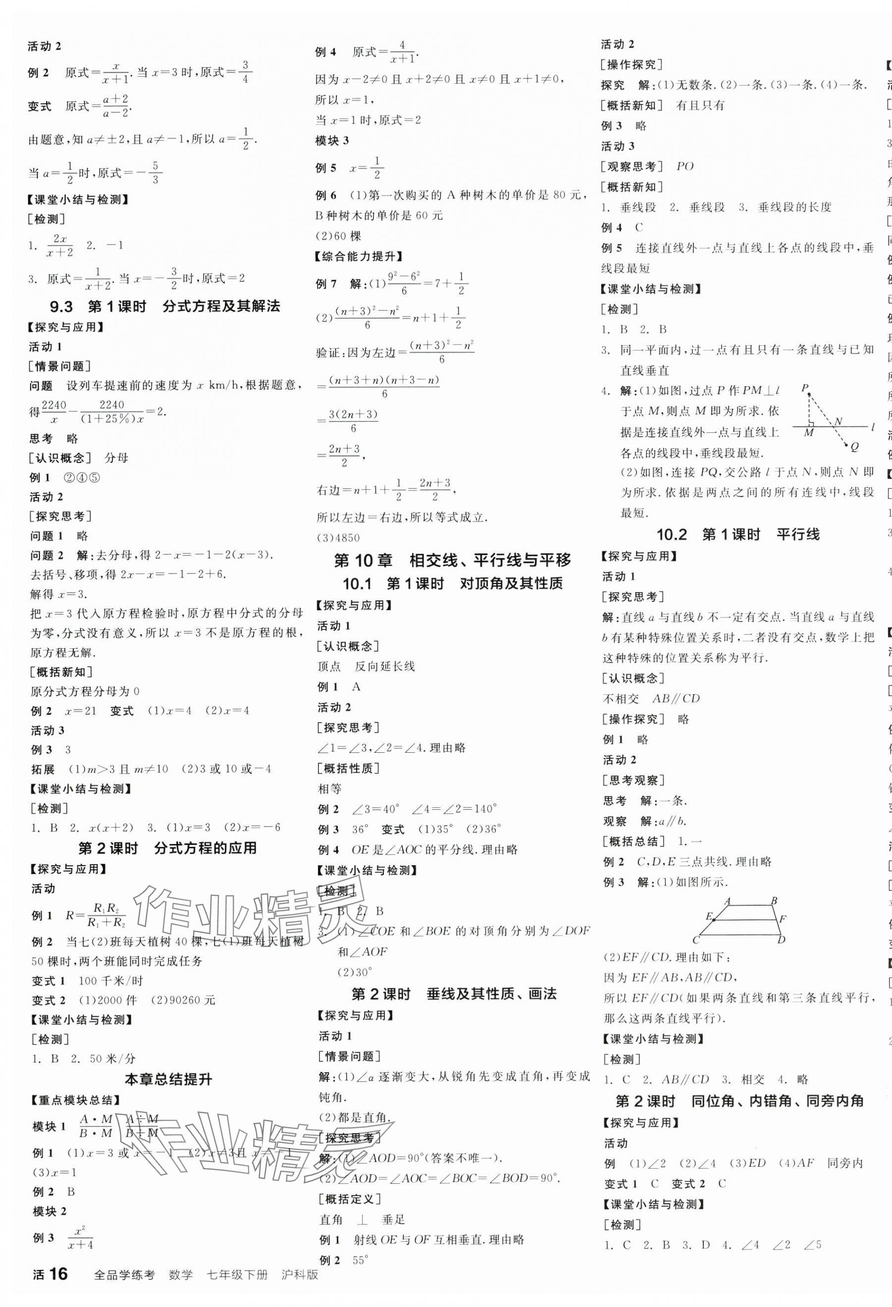 注:目前有些书本章节名称可能整理的还不是很完善,但都是按照顺序排列的,请同学们按照顺序仔细查找。练习册 2025年全品学练考七年级数学下册沪科版 答案主要是用来给同学们做完题方便对答案用的,请勿直接抄袭。