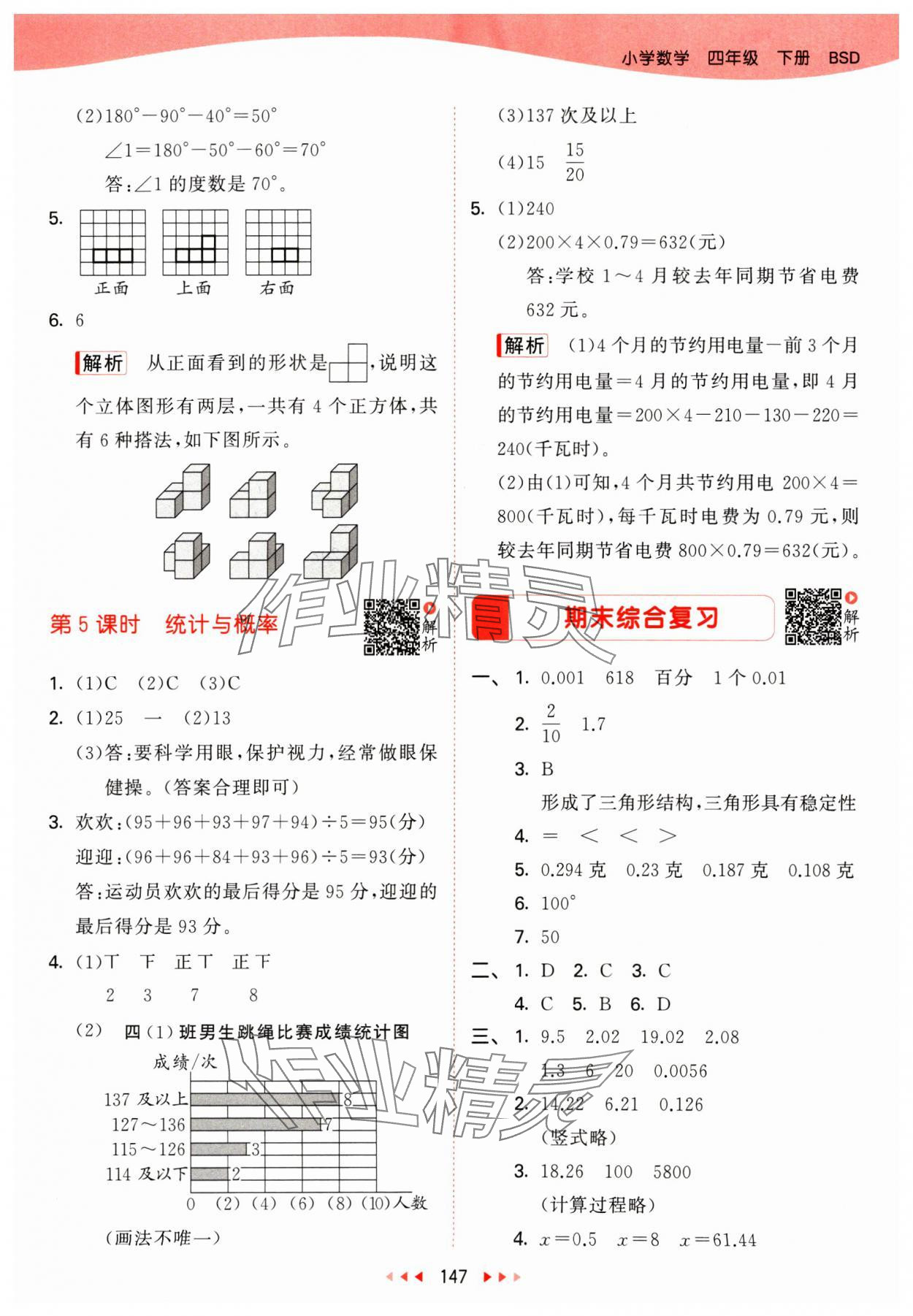 注:目前有些书本章节名称可能整理的还不是很完善,但都是按照顺序排列的,请同学们按照顺序仔细查找。练习册 2025年53天天练四年级数学下册北师大版 答案主要是用来给同学们做完题方便对答案用的,请勿直接抄袭。