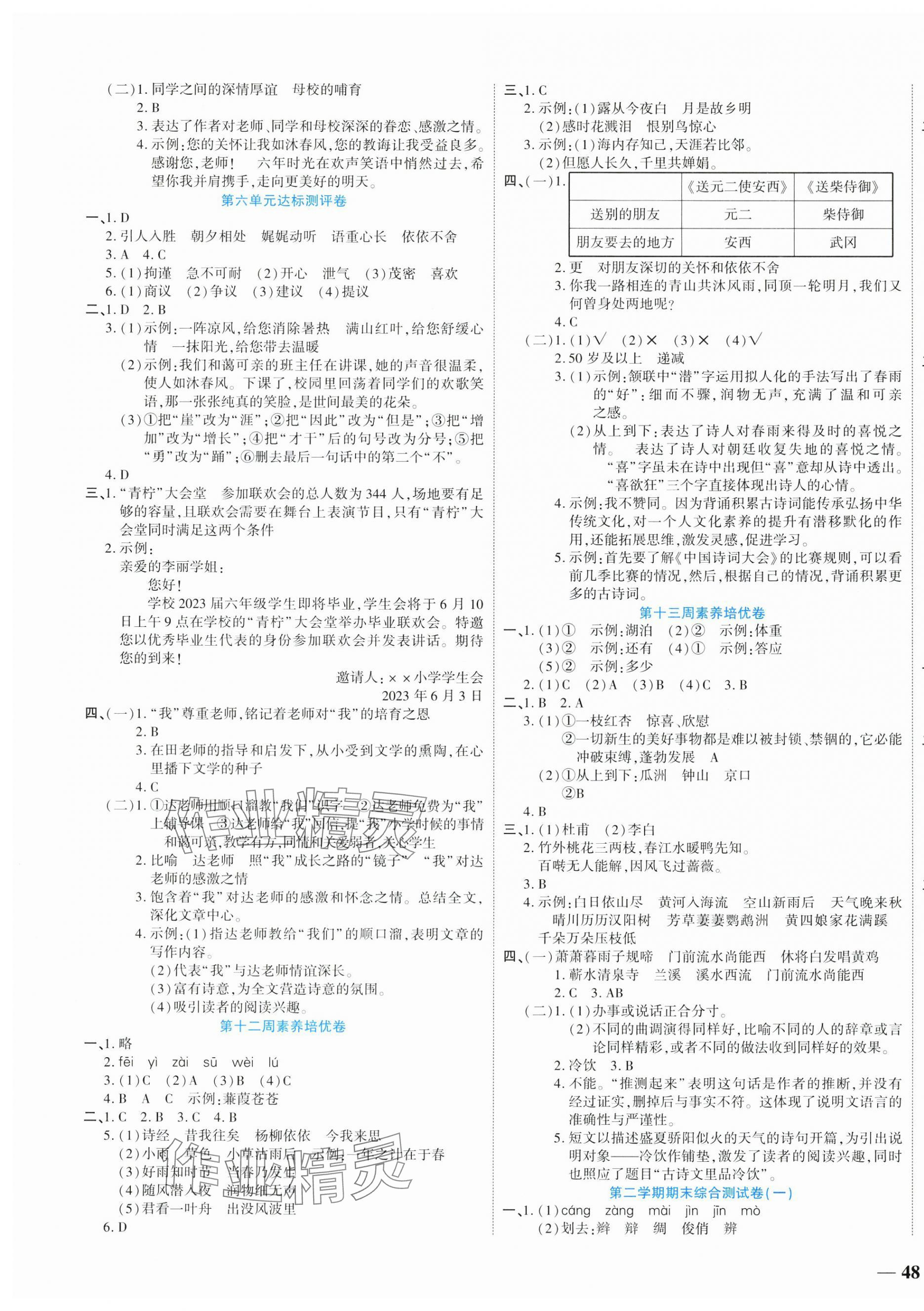 注:目前有些书本章节名称可能整理的还不是很完善,但都是按照顺序排列的,请同学们按照顺序仔细查找。练习册 2025年金优教辅全能练考卷六年级语文下册人教版 答案主要是用来给同学们做完题方便对答案用的,请勿直接抄袭。