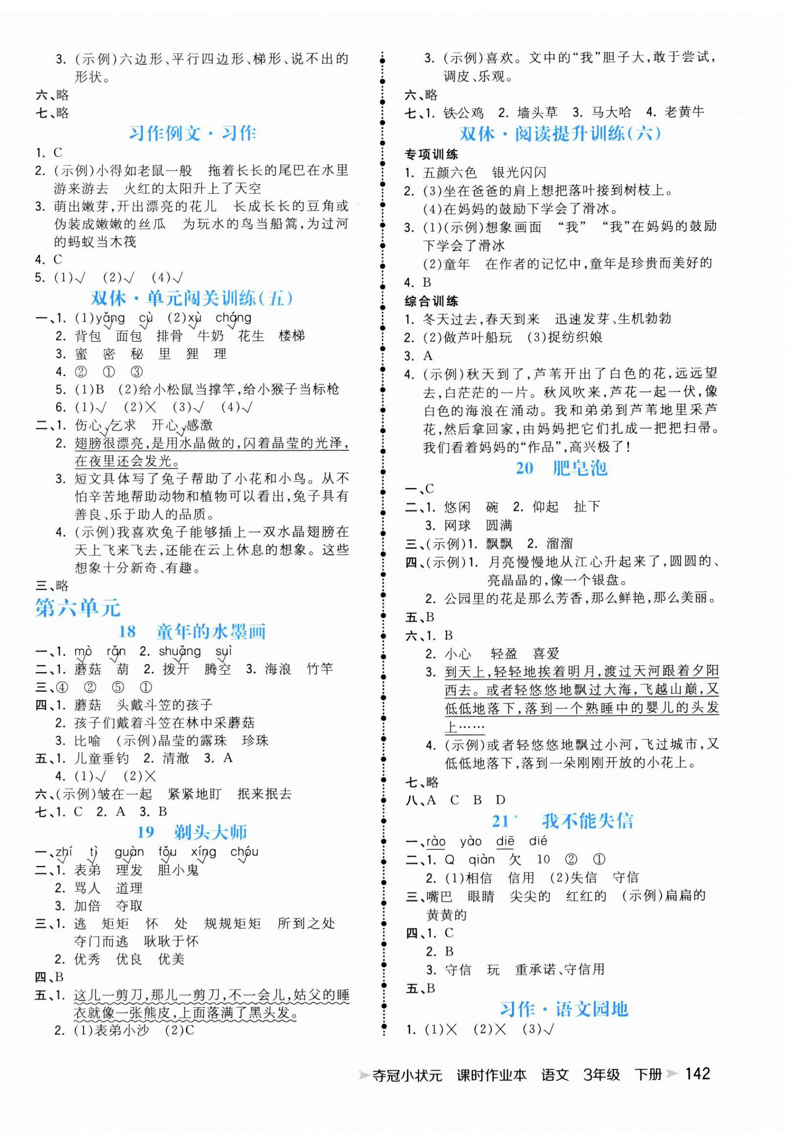 注:目前有些书本章节名称可能整理的还不是很完善,但都是按照顺序排列的,请同学们按照顺序仔细查找。练习册 2025年夺冠小状元课时作业本三年级语文下册人教版 答案主要是用来给同学们做完题方便对答案用的,请勿直接抄袭。