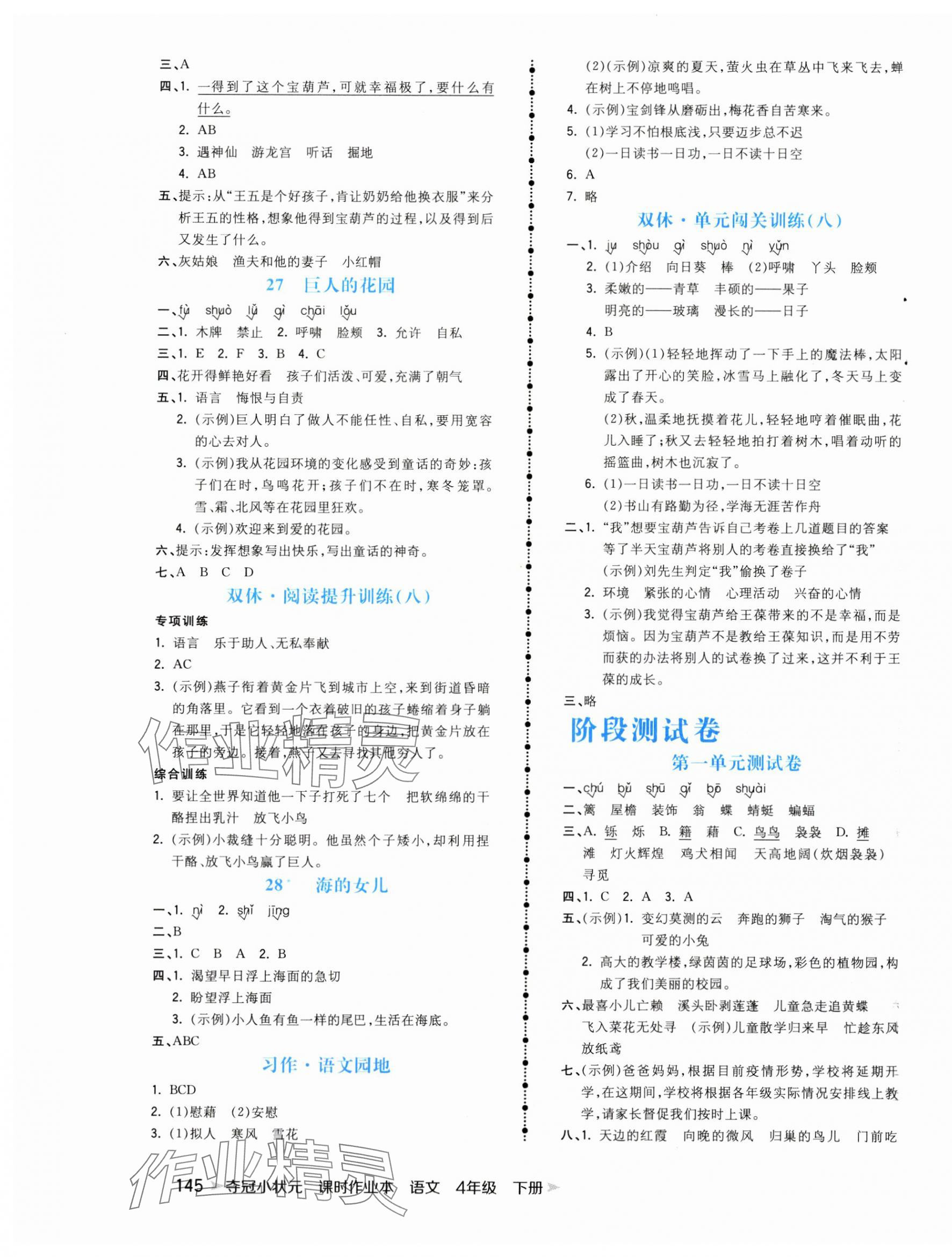 注:目前有些书本章节名称可能整理的还不是很完善,但都是按照顺序排列的,请同学们按照顺序仔细查找。练习册 2025年夺冠小状元课时作业本四年级语文下册人教版 答案主要是用来给同学们做完题方便对答案用的,请勿直接抄袭。