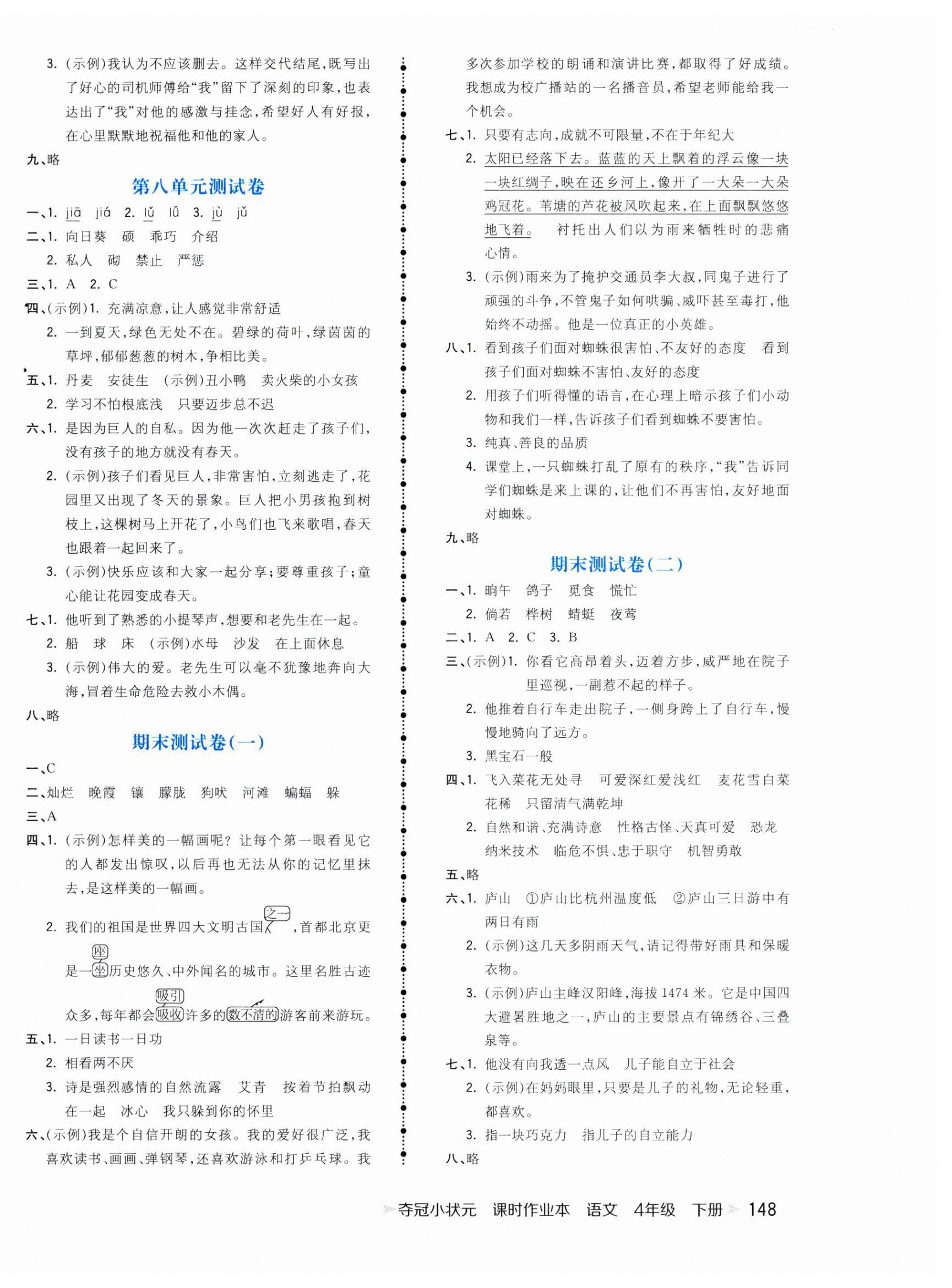 注:目前有些书本章节名称可能整理的还不是很完善,但都是按照顺序排列的,请同学们按照顺序仔细查找。练习册 2025年夺冠小状元课时作业本四年级语文下册人教版 答案主要是用来给同学们做完题方便对答案用的,请勿直接抄袭。
