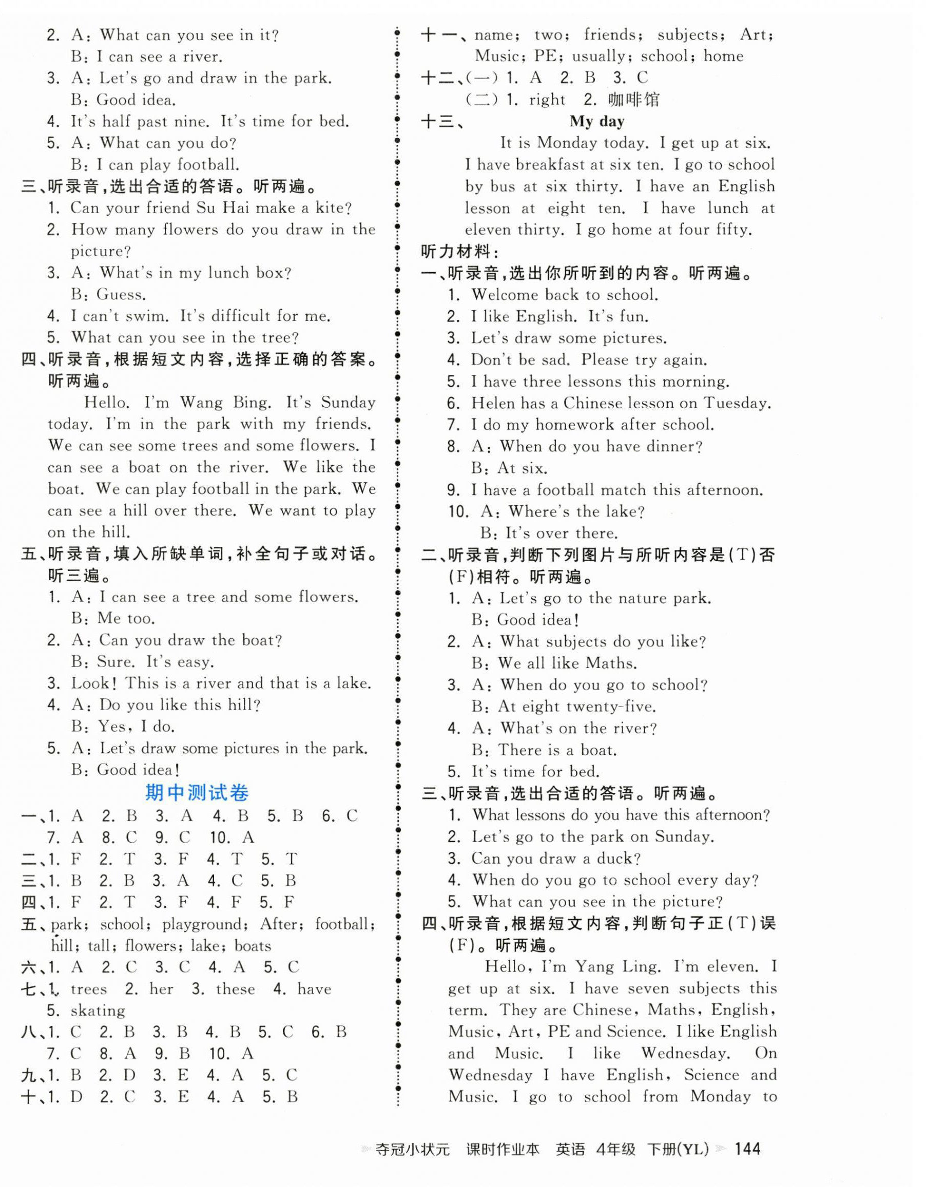 注:目前有些书本章节名称可能整理的还不是很完善,但都是按照顺序排列的,请同学们按照顺序仔细查找。练习册 2025年夺冠小状元课时作业本四年级英语下册译林版 答案主要是用来给同学们做完题方便对答案用的,请勿直接抄袭。