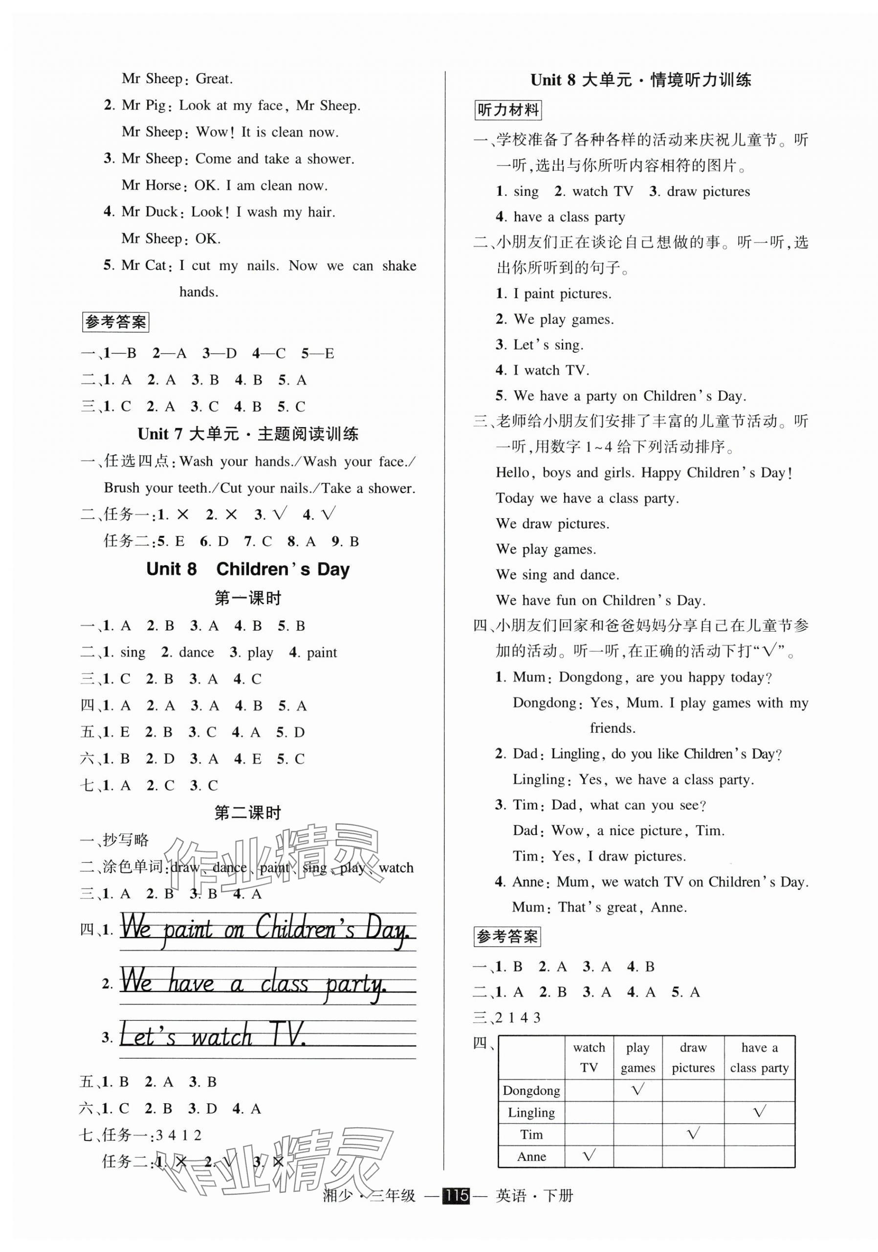 注:目前有些书本章节名称可能整理的还不是很完善,但都是按照顺序排列的,请同学们按照顺序仔细查找。练习册 2025年状元成才路创优作业100分三年级英语下册湘少版 答案主要是用来给同学们做完题方便对答案用的,请勿直接抄袭。